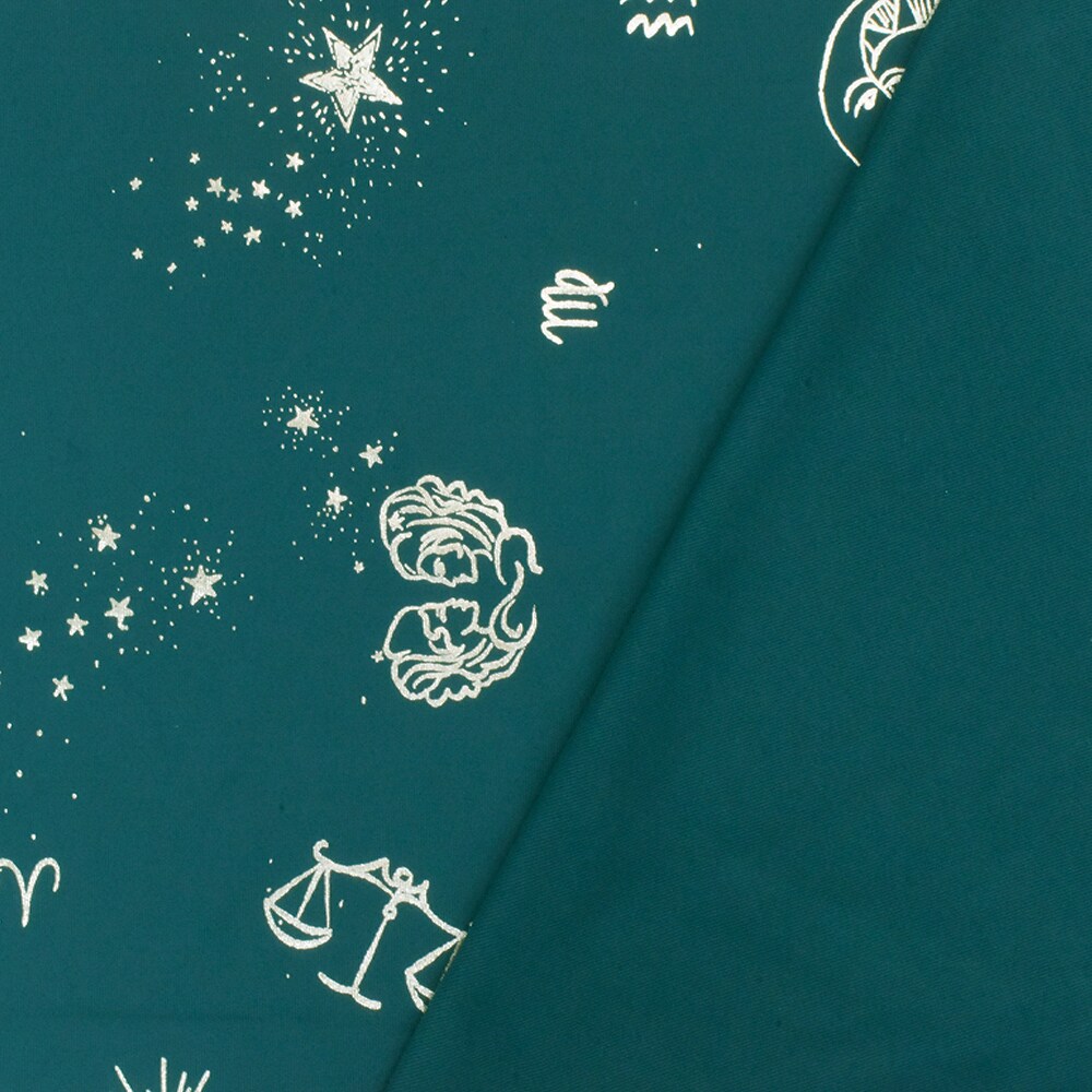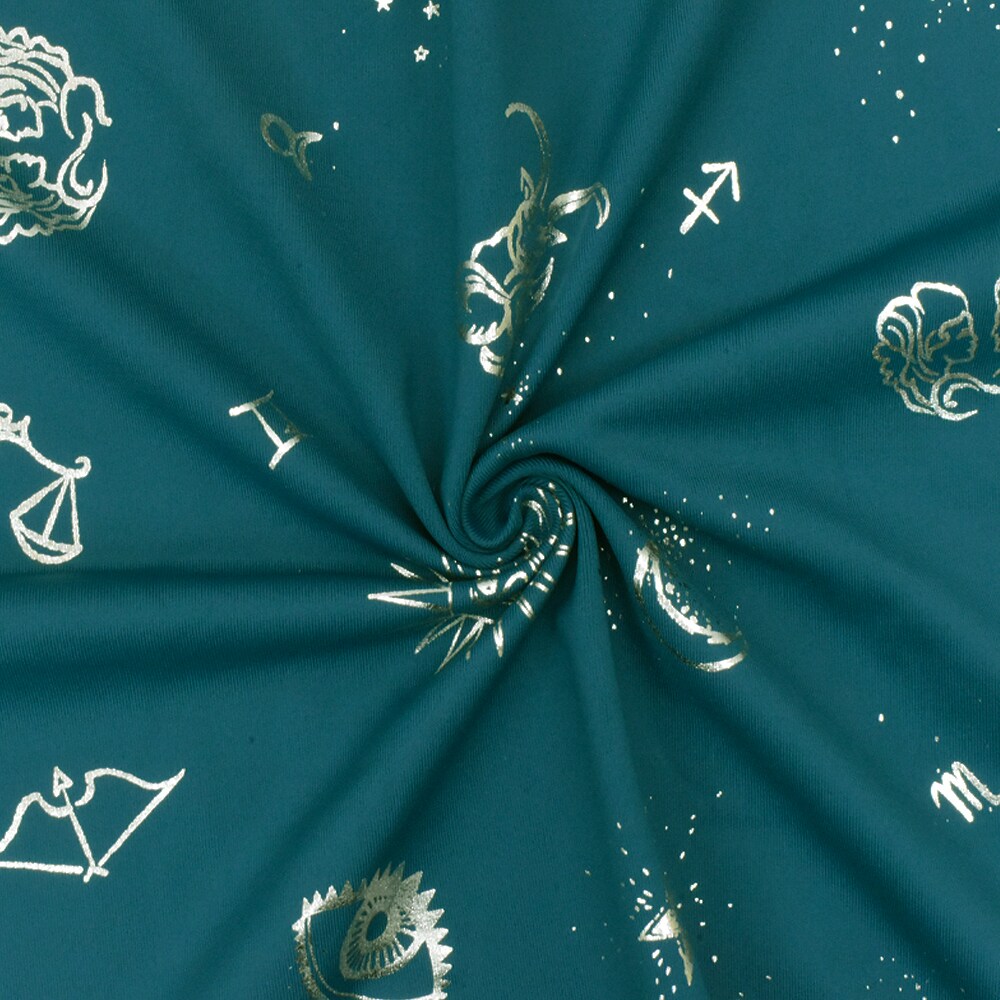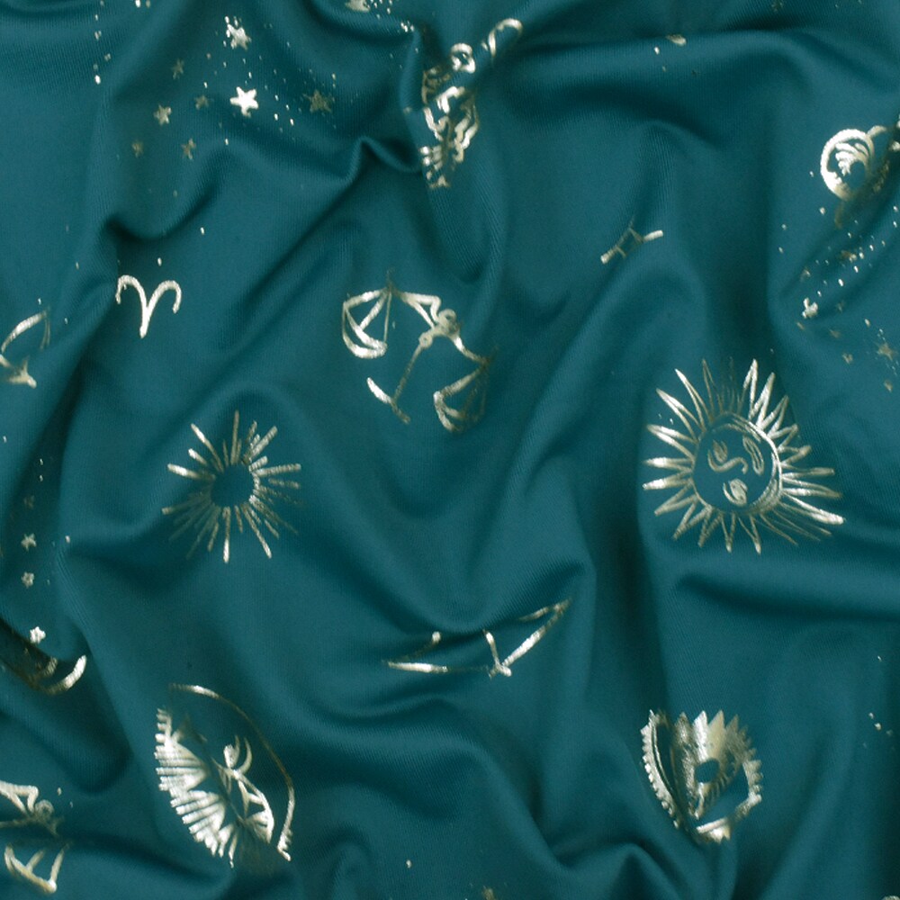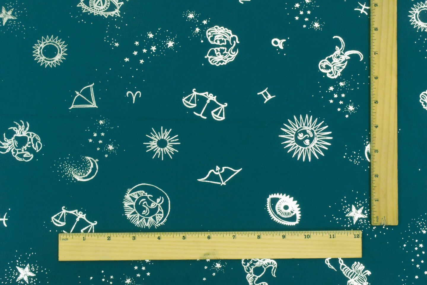 Teal-Silver Famous Maker Zodiac Print Stretch Tricot Swimwear Knit Fabric By the Yard
