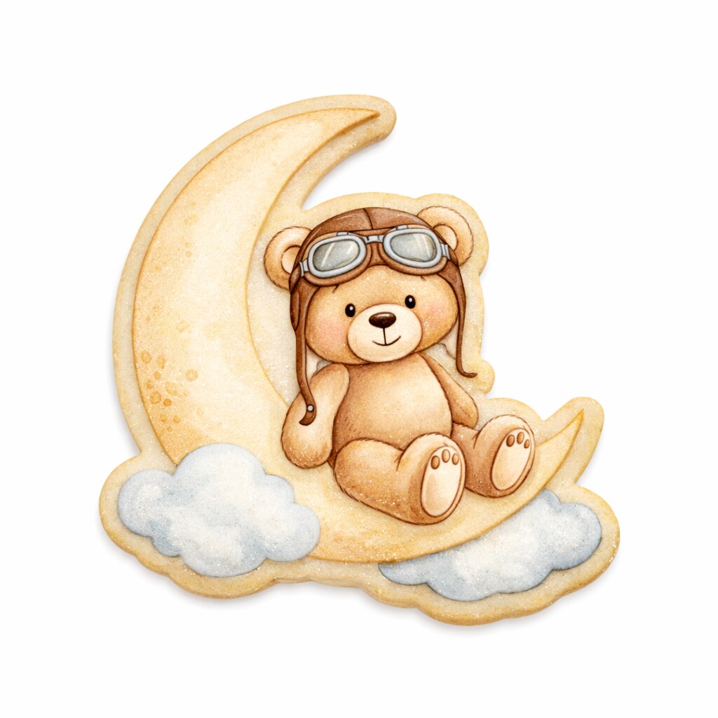 Teddy Bear on Crescent Moon Cookie Cutter and Stamp
