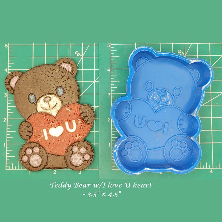 Teddy Bear with I Love You heart Silicone Freshie Mold