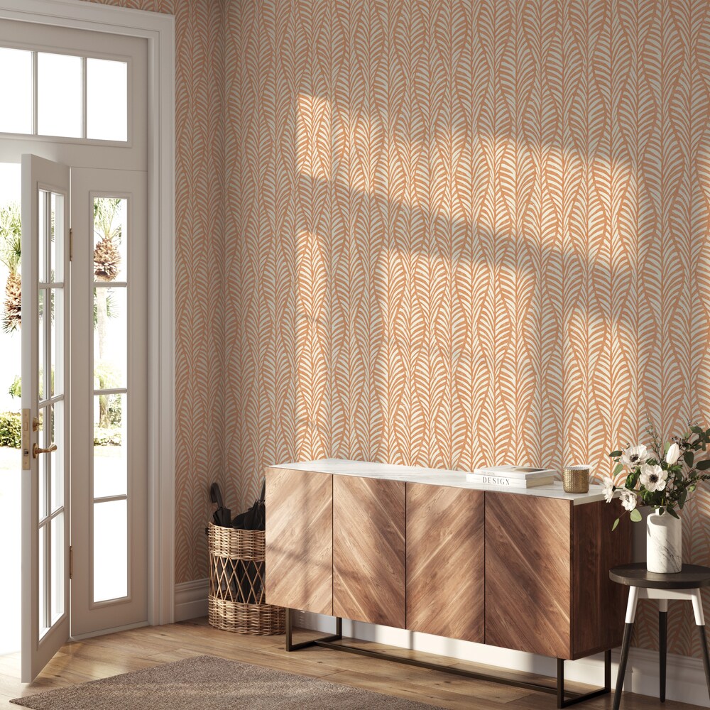 Tempaper Block Print Leaves Peel and Stick Wallpaper Terracotta
