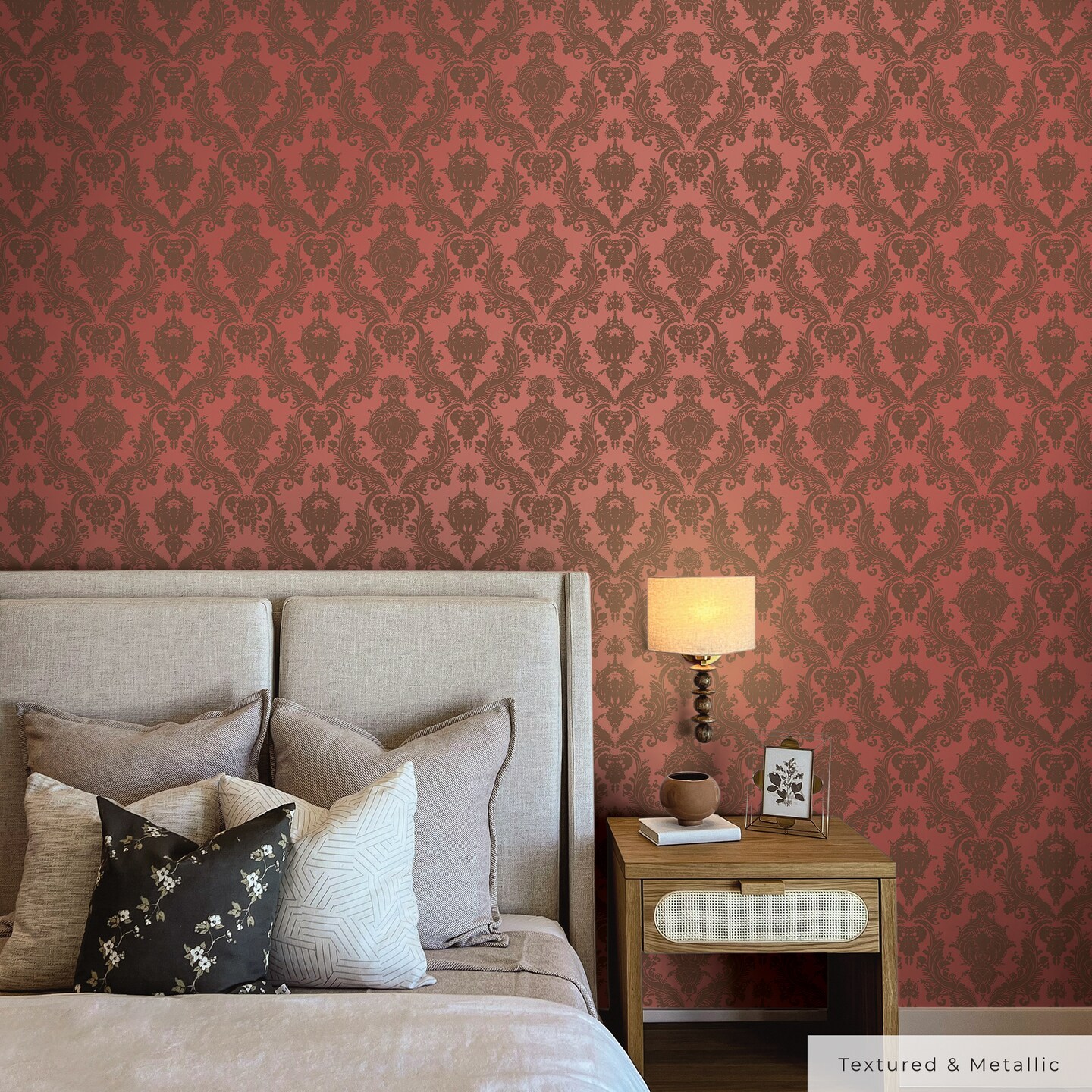 Tempaper Damsel Textured Peel and Stick Wallpaper Metallic Ruby