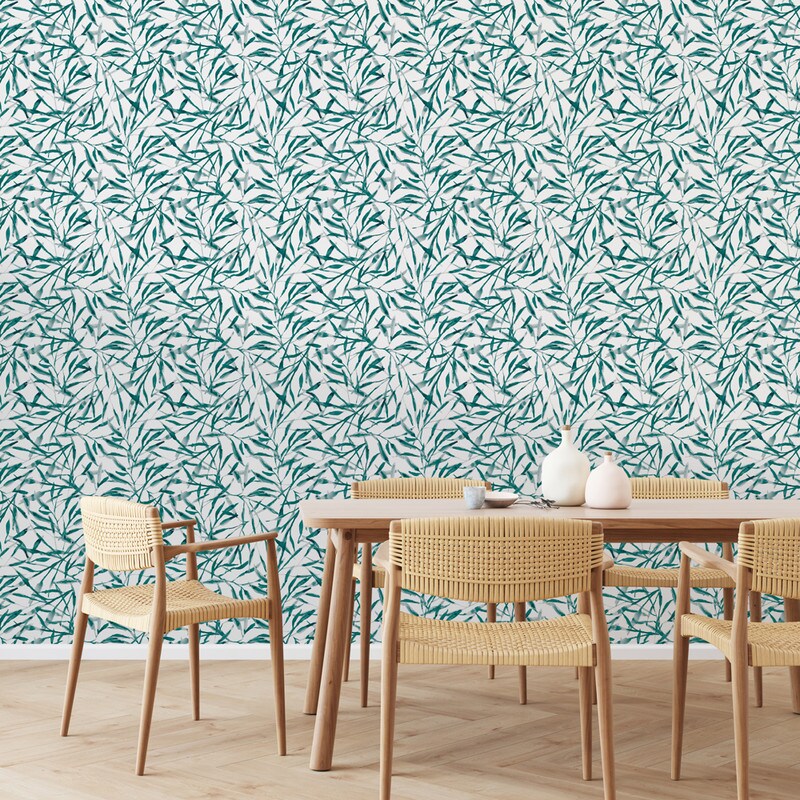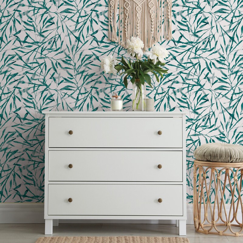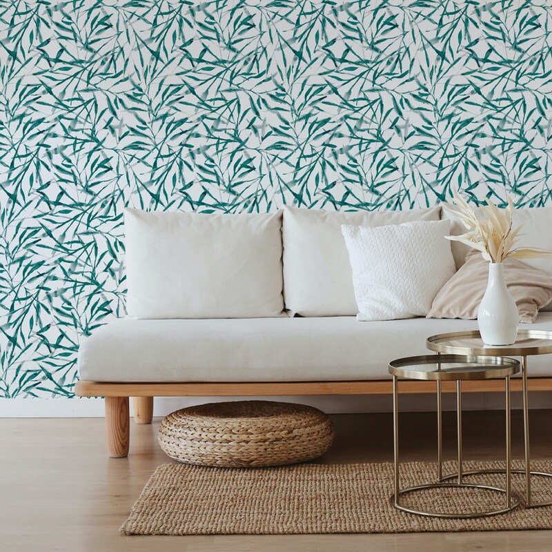 Tempaper Watercolor Leaves Peel and Stick Wallpaper Viridian Green