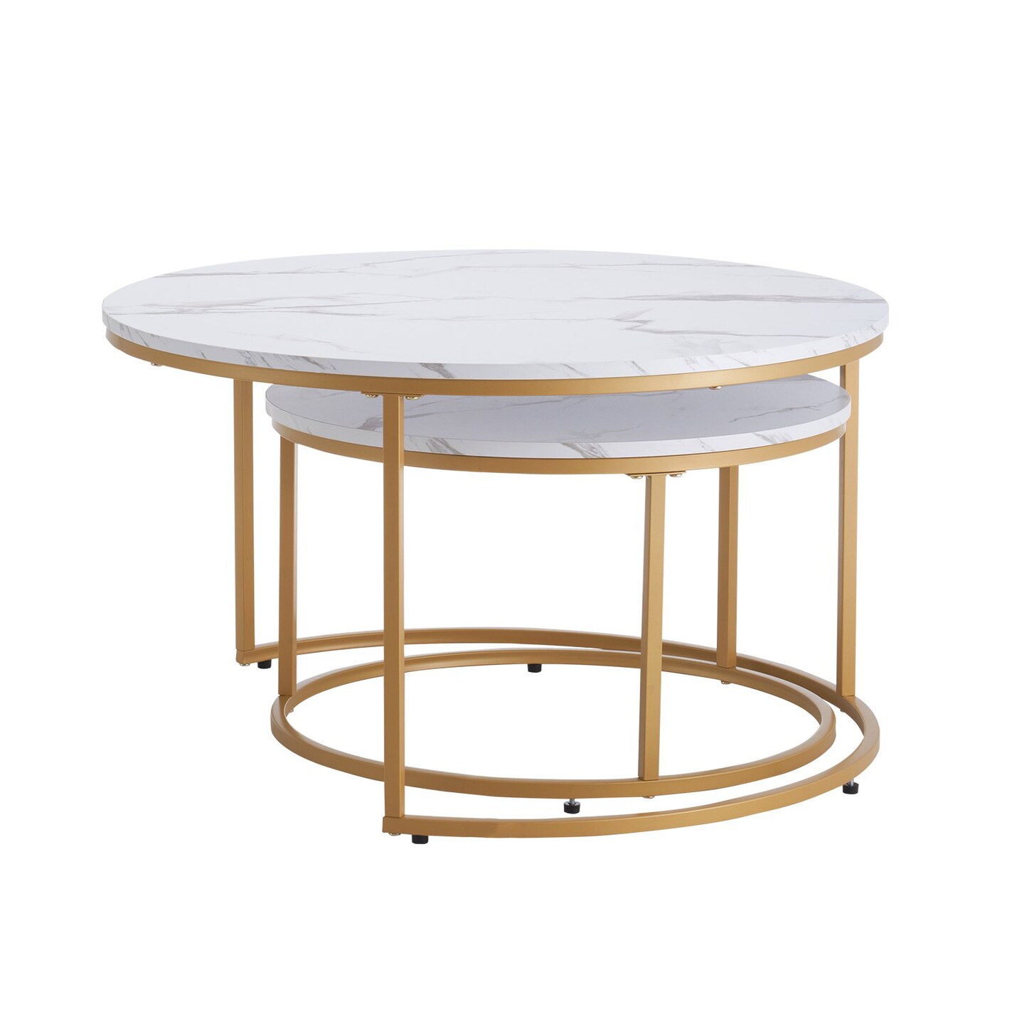Tempered Glass and MDF Round Nesting Coffee Table Set with Carbon Steel Frame