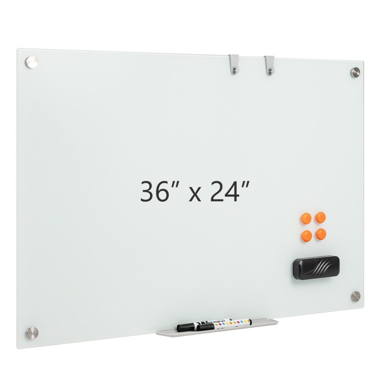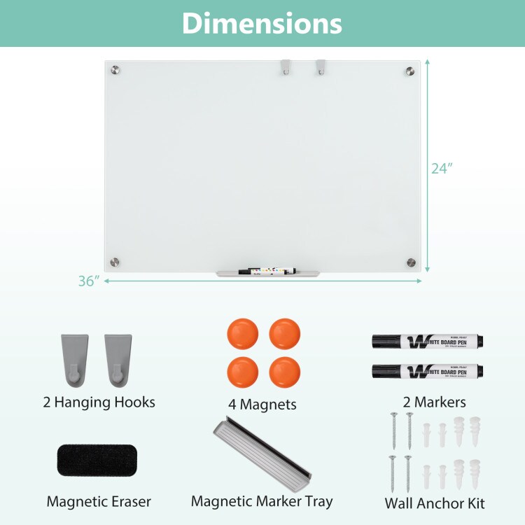 Tempered Glass Whiteboard 36" x 24" Magnetic Frameless Wall-Mount Dry-Erase White