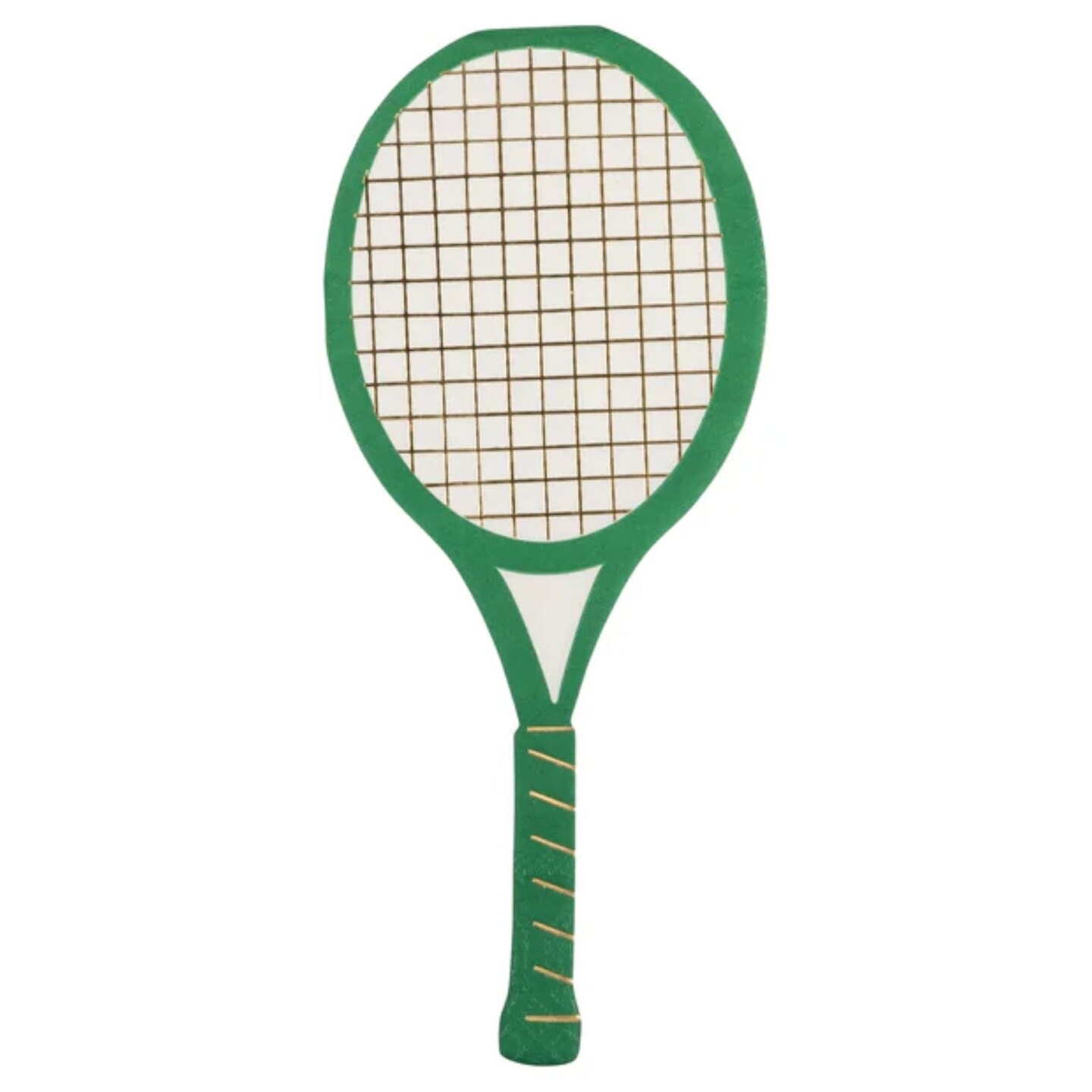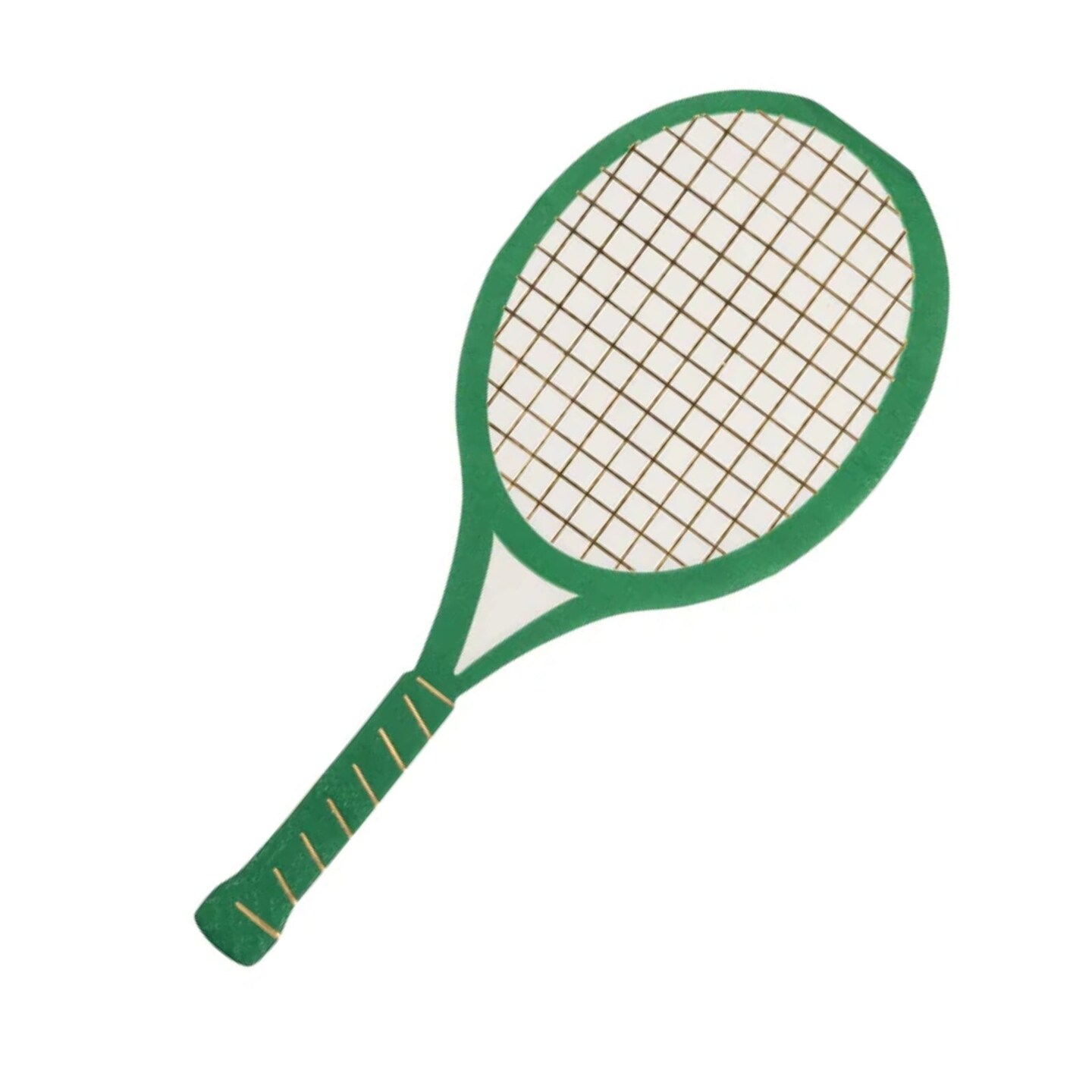 Tennis Racket Cocktail Napkins – Set of 18 | Gold Foil Tennis-Themed Paper Napkins for Parties & Events