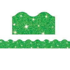 Terrific Trimmers® Sparkle Green Bulletin Board Border – 2¼ in x 32½ ft, Glitter Classroom Trim