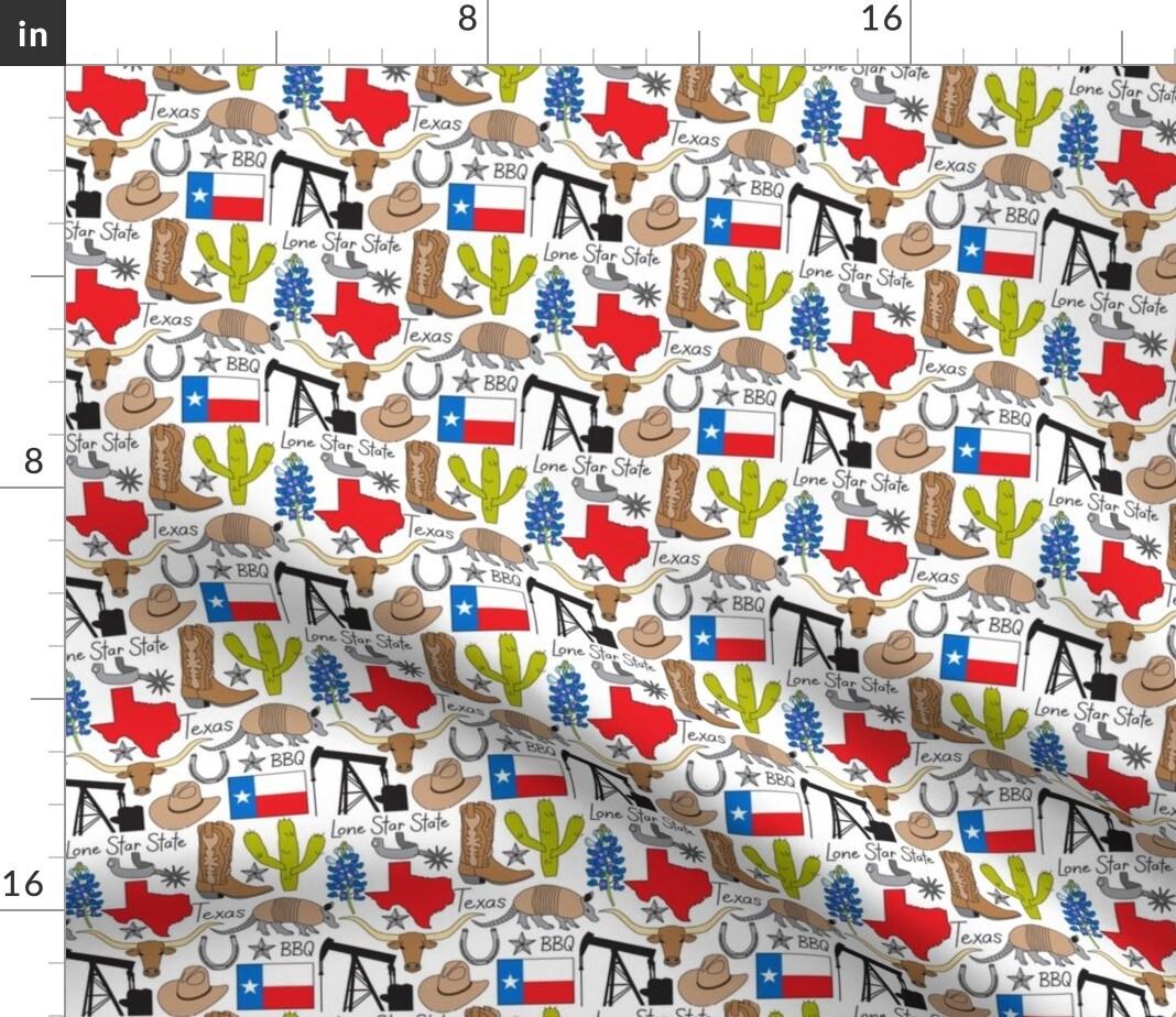 Texas Small Scale Lone Star State Longhorn Cactus Armadillo Bluebonnet Cowboy Custom Printed Fabric by Spoonflower Various Fabrics by the Yard or Fat Quarter