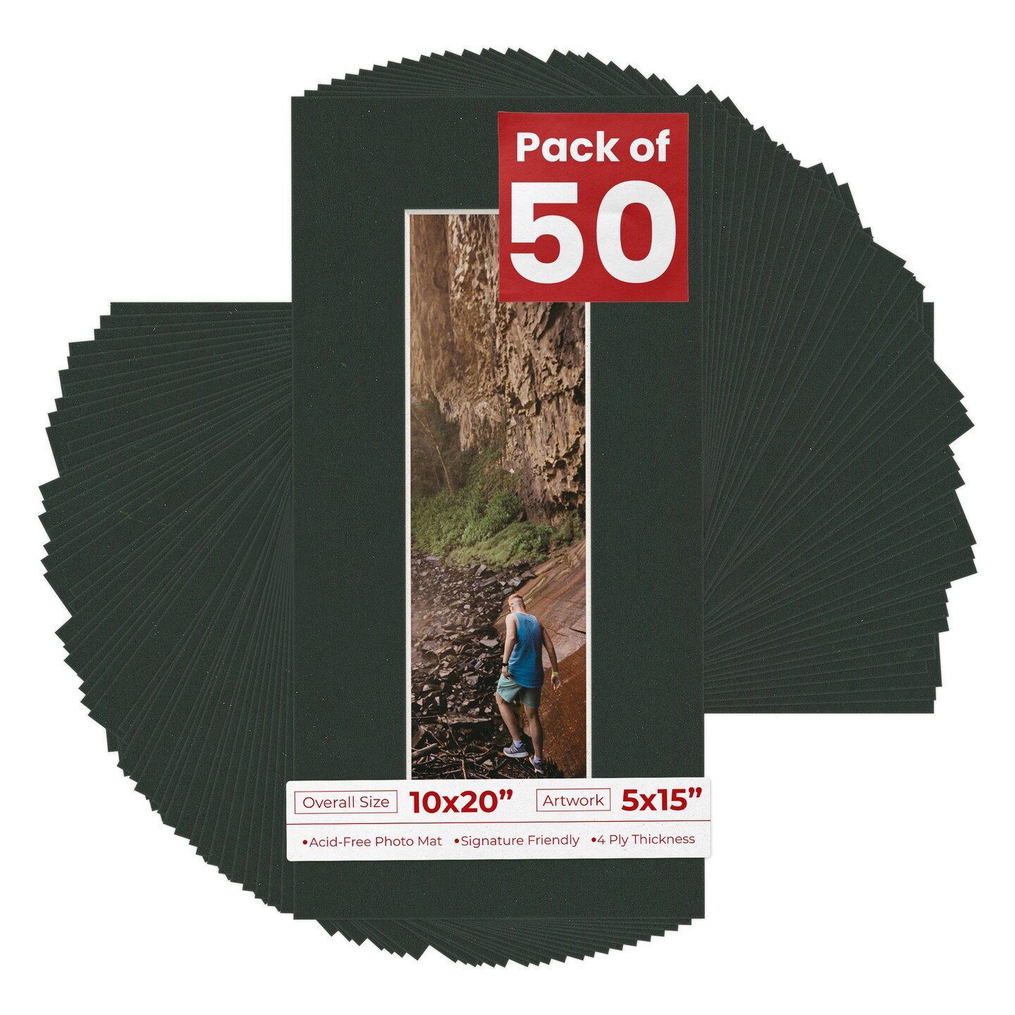 Textured Black Mat Board for 10x20 Frames - Fits 5x15 Photos