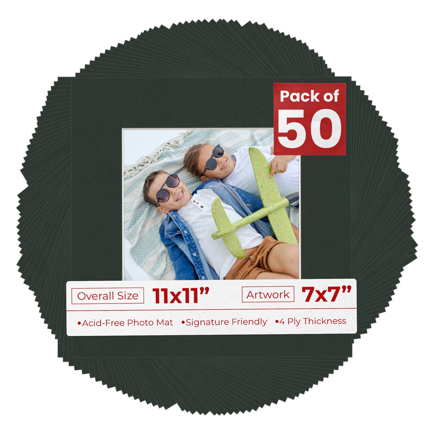 Textured Black Mat Board for 11x11 Frames - Fits 7x7 Photos