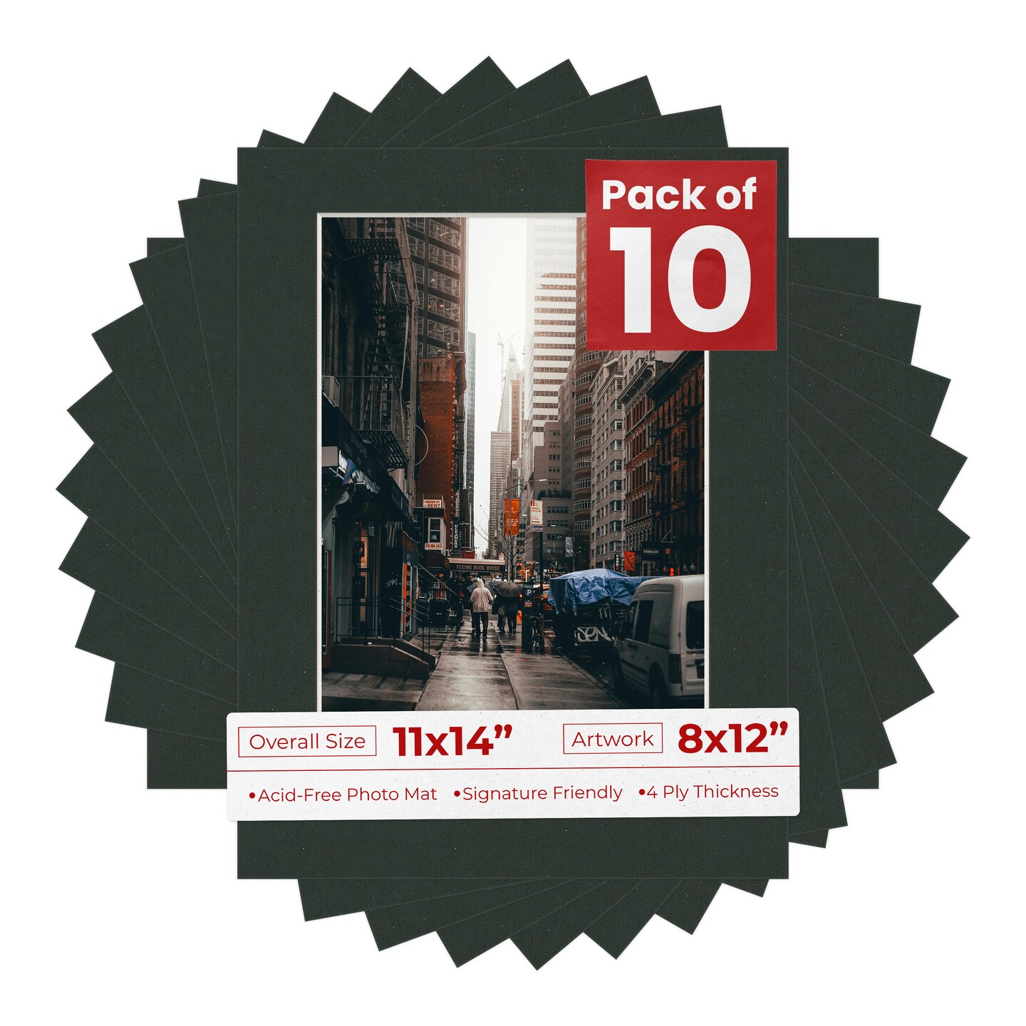 Textured Black Mat Board for 11x14 Frames - Fits 8x12 Photos