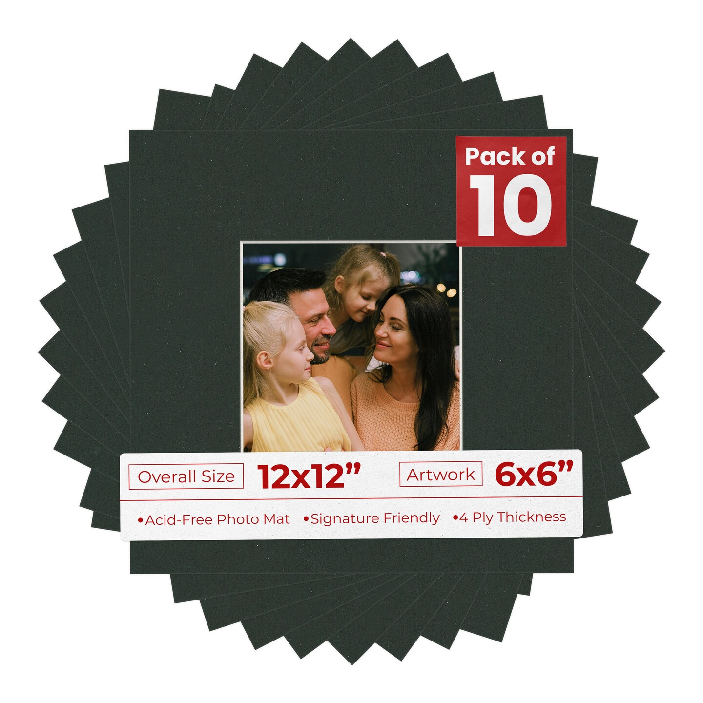 Textured Black Mat Board for 12x12 Frames - Fits 6x6 Photos