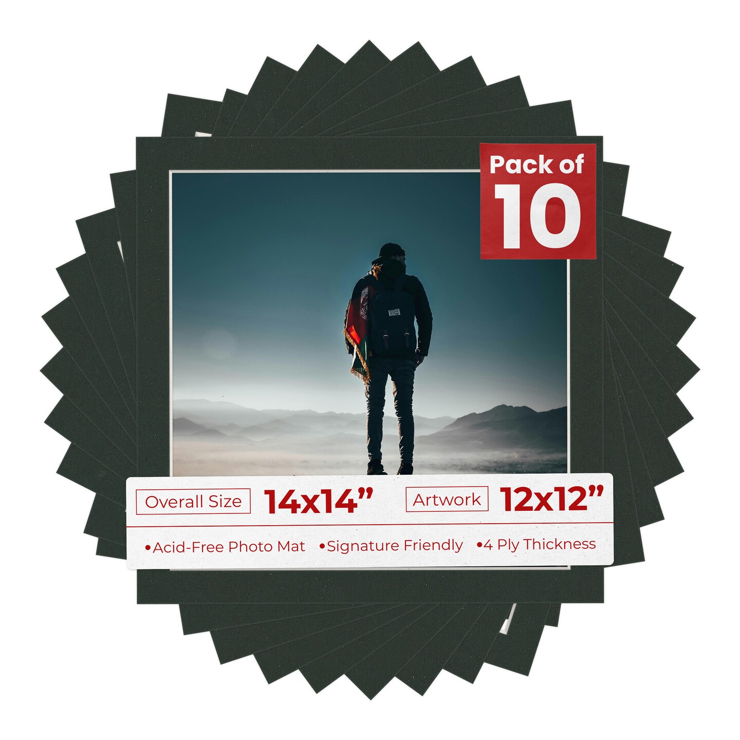 Textured Black Mat Board for 14x14 Frames - Fits 12x12 Photos