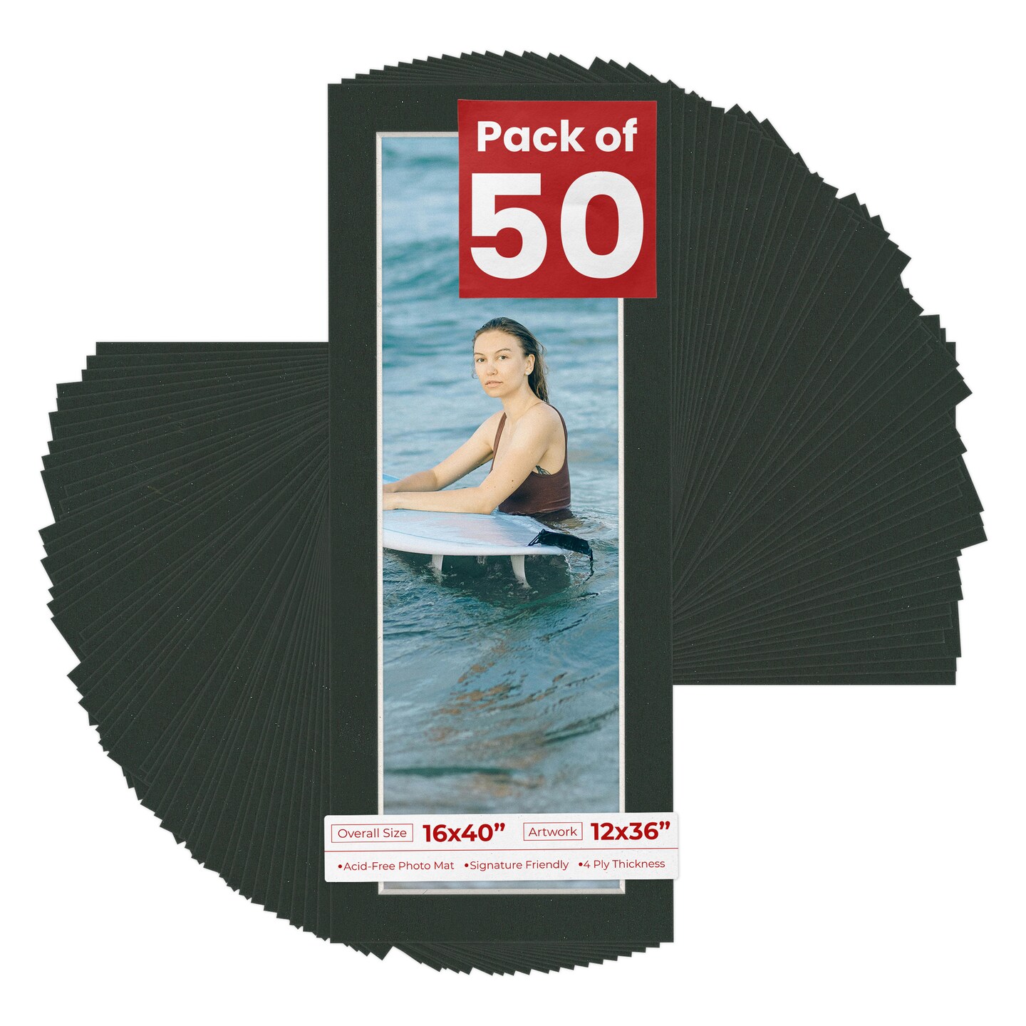 Textured Black Mat Board for 16x40 Frames - Fits 12x36 Photos