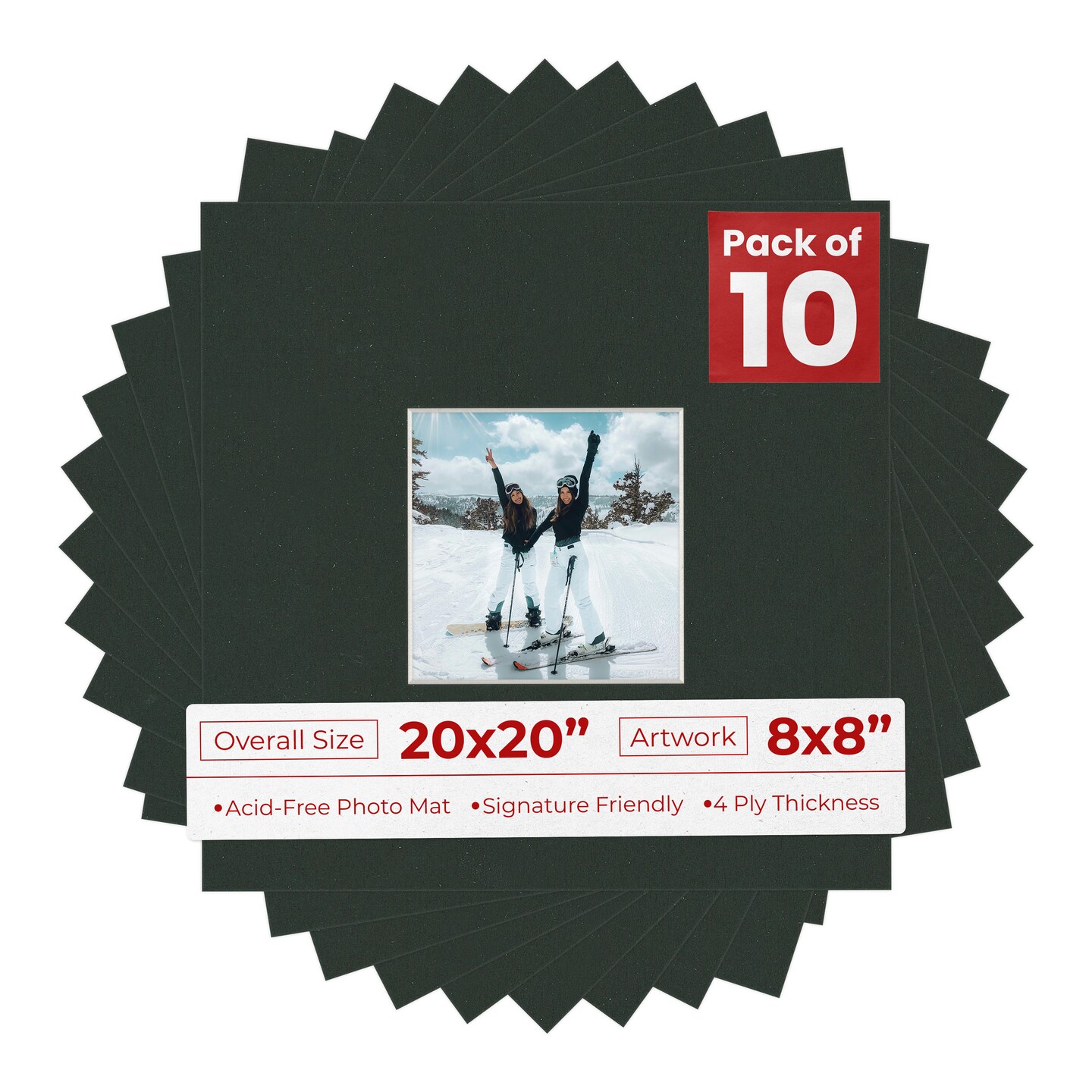 Textured Black Mat Board for 20x20 Frames - Fits 8x8 Photos