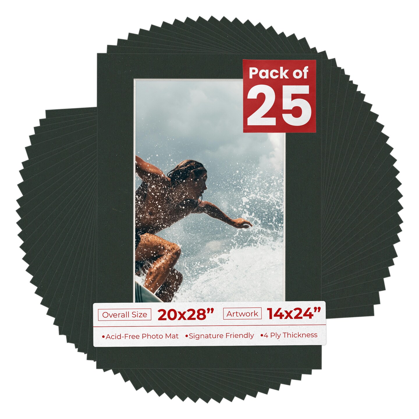Textured Black Mat Board for 20x28 Frames - Fits 14x24 Photos