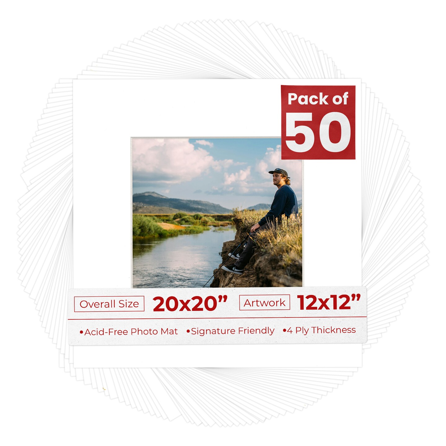 Textured White Mat Board for 20x20 Frames - Fits 12x12 Photos