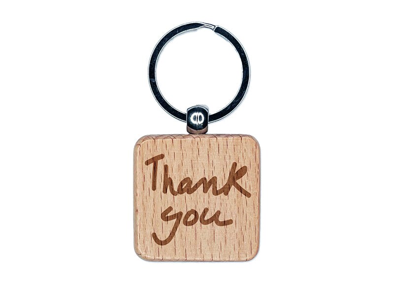 Thank You Handwritten Fun Text Engraved Wood Square Keychain Tag Charm