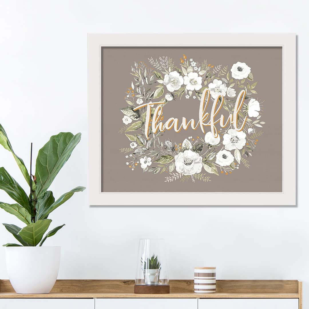 Thankful Wreath White Framed Print Wall Art
