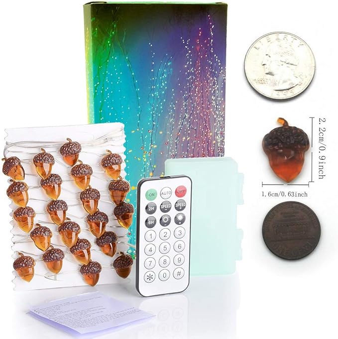 Thanksgiving Decorations Acorn Lights String 10ft 40 LEDs Fairy String Lights Battery Operated with Remote Fall Lights for Home Autumn Garland Bedroom Christmas Tree Halloween Party Decor