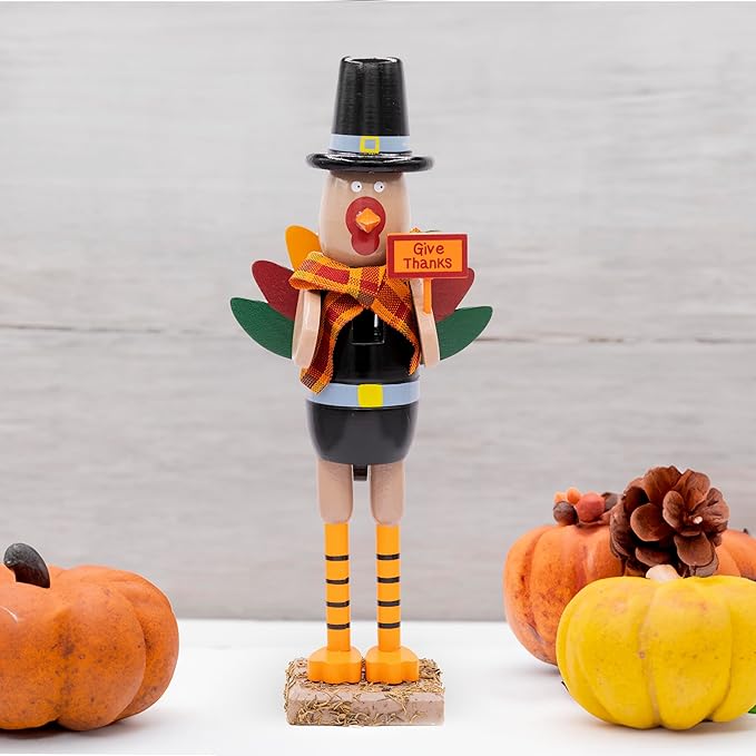 Thanksgiving Fall Turkey Nutcracker – Green and Orange Wooden Turkey Nutcracker Holiday Christmas Nut Cracker Doll Figure Home Table Decorations