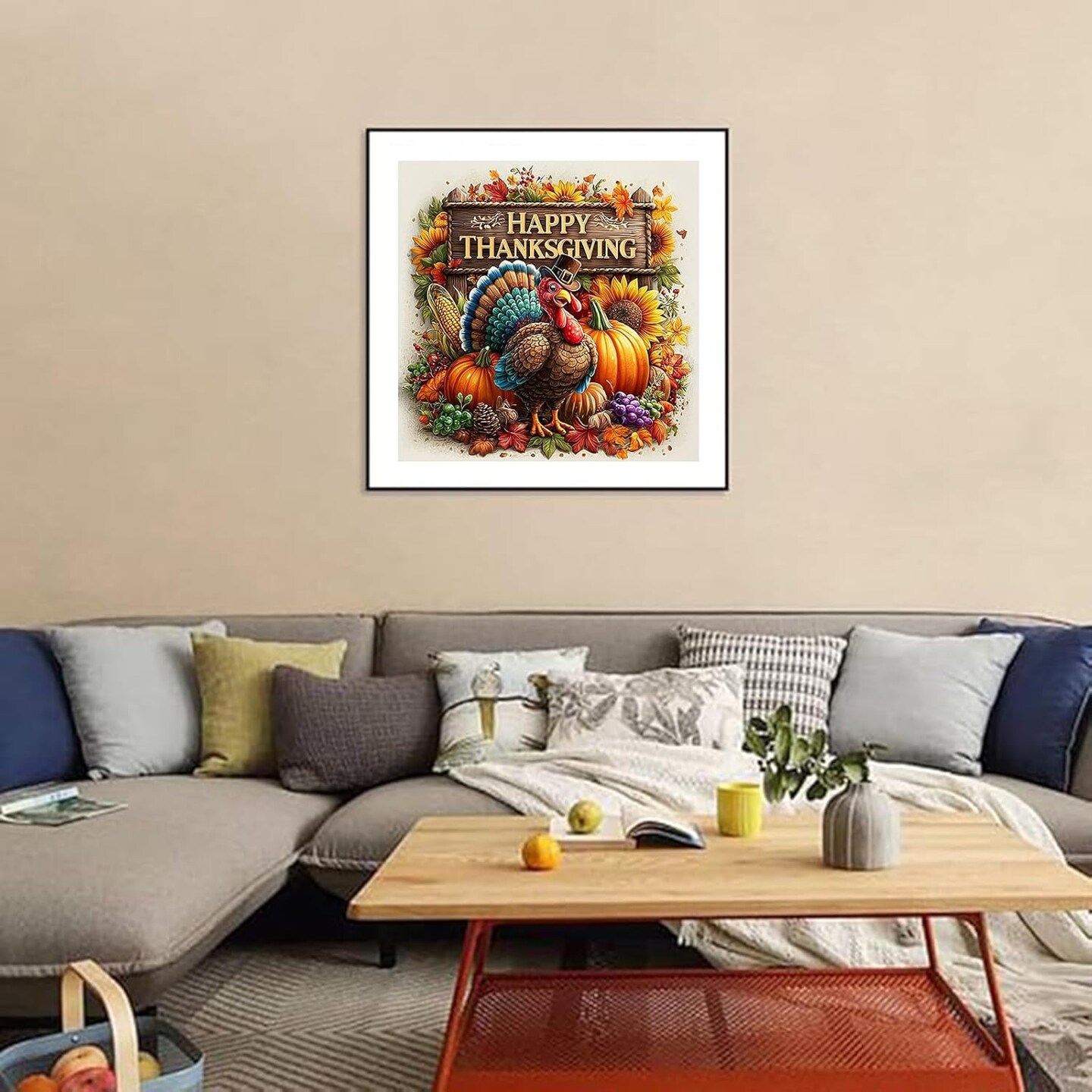 Thanksgiving Turkey 5D Diamond Painting Kit – Full Round Drill DIY Gem Art for Adults, 13.8x13.8 Inch Wall Décor