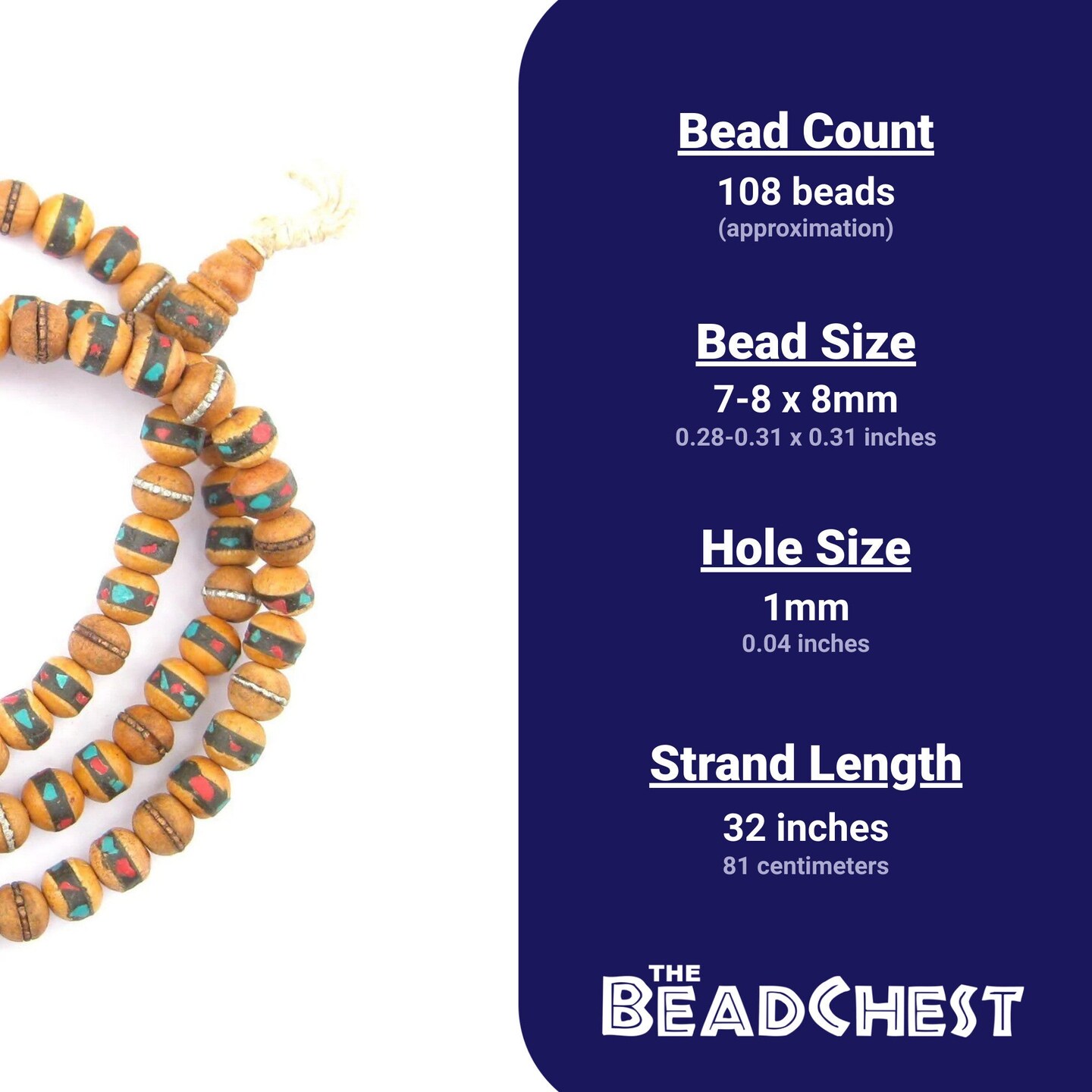 The Bead Chest 8mm Inlaid Sandalwood Mala Beads: Fragrant Aromatic Wooden Meditation Beads for Yoga, Jewelry, Necklace, Chanting Genuine Nepal Product