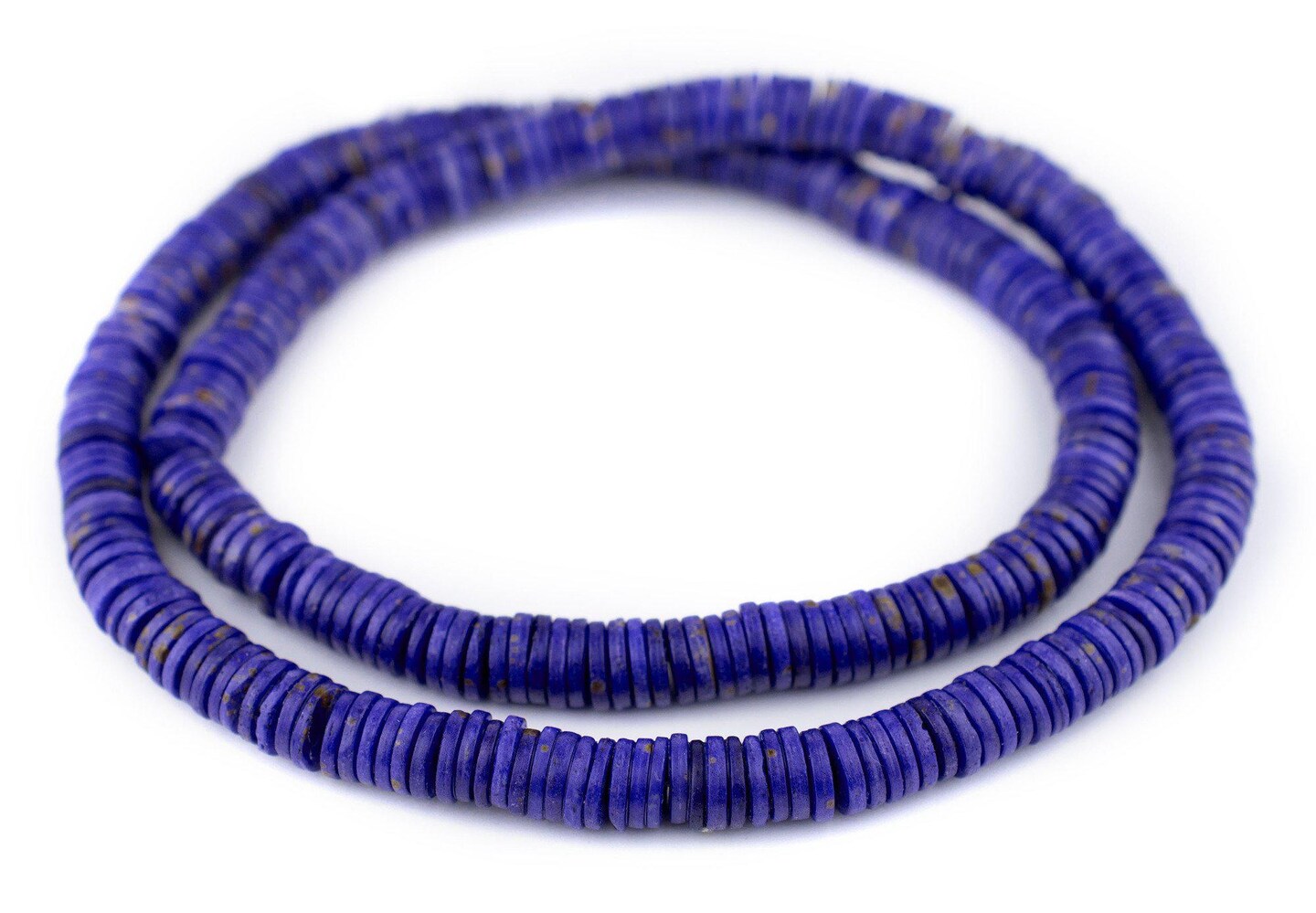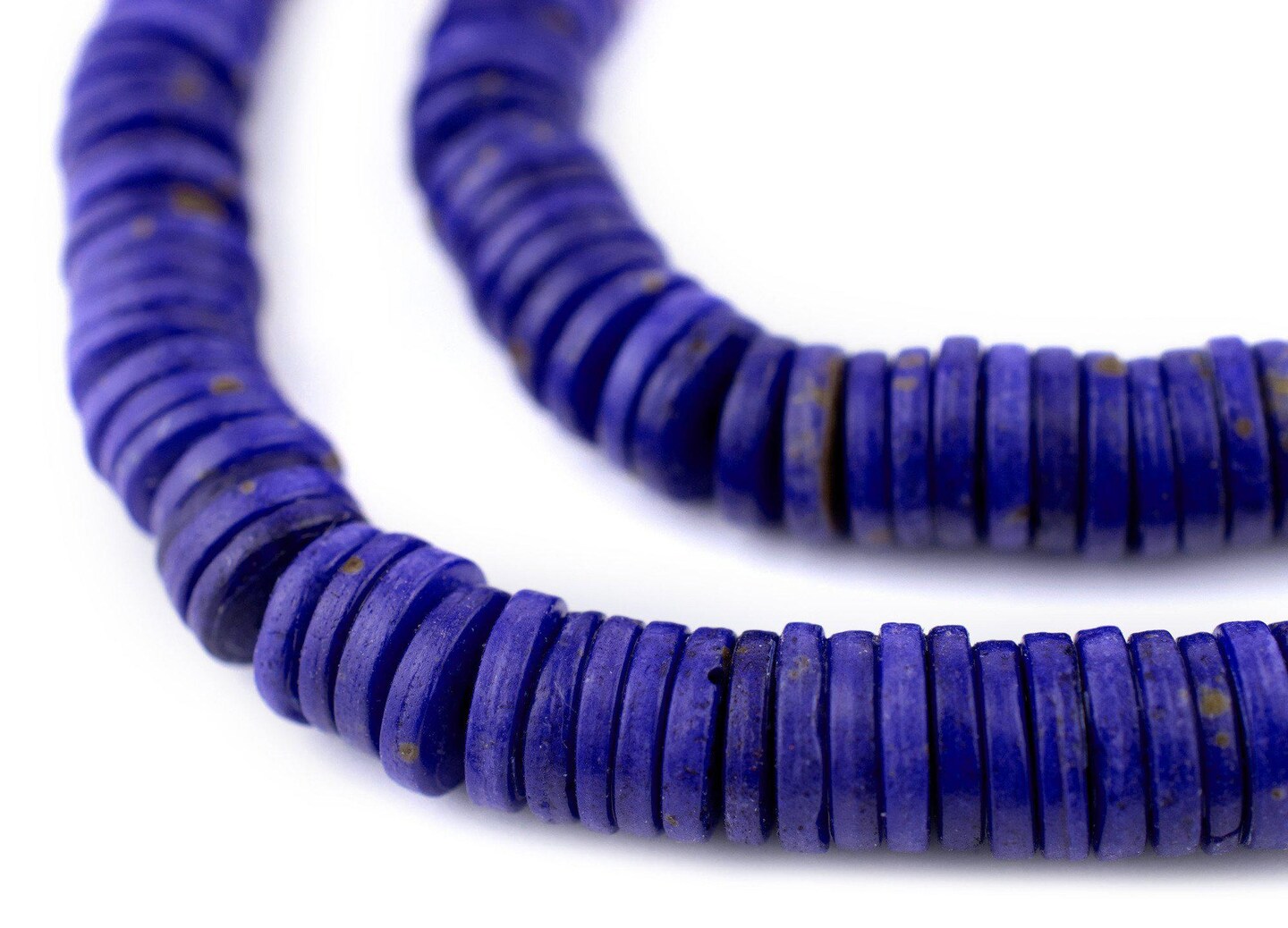 The Bead Chest 8mm Lapis Blue Bone Button Beads: Nepal Flat Round Disk Heishi Beads for DIY Necklace Jewelry Making