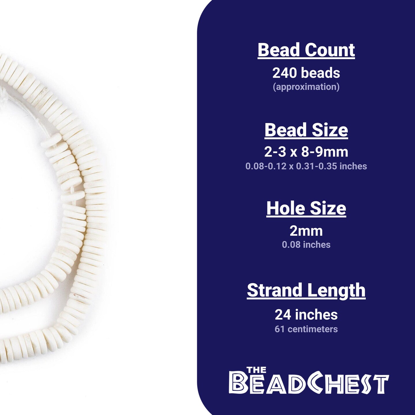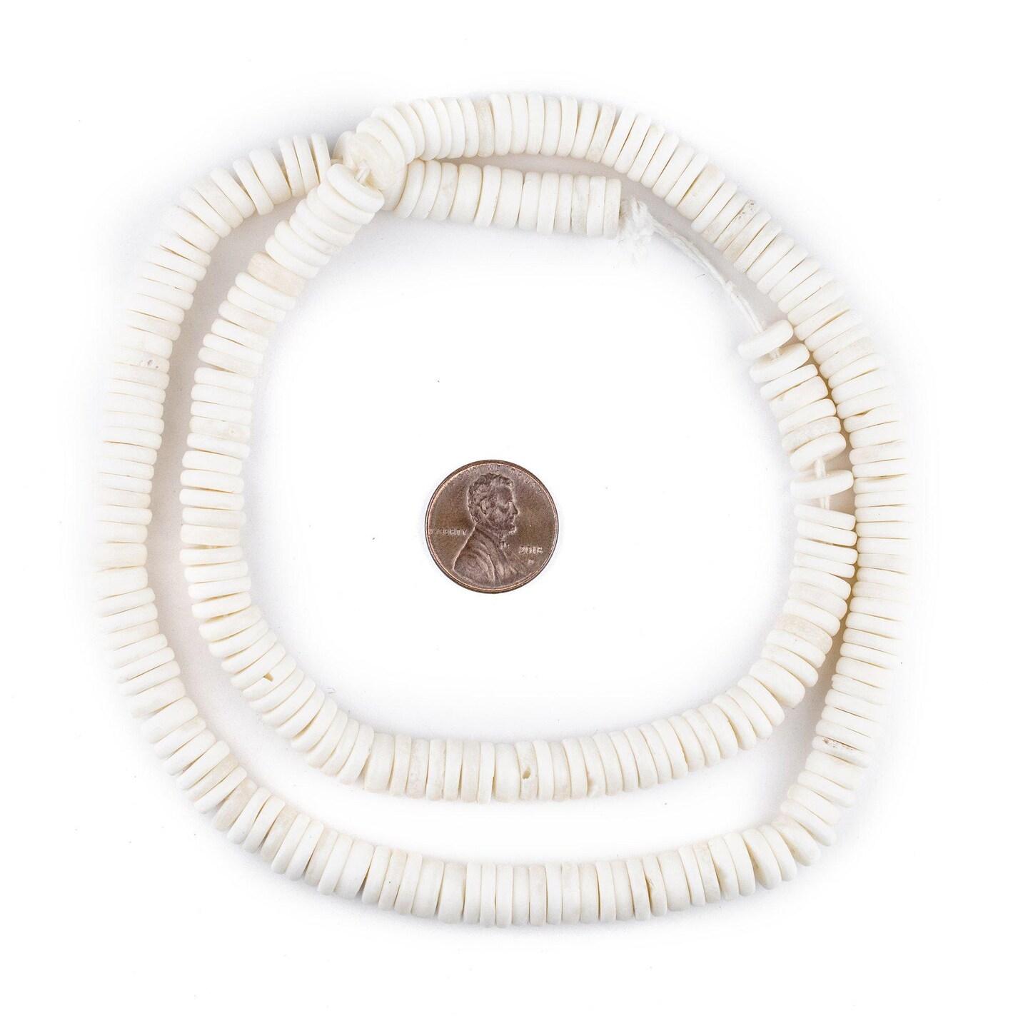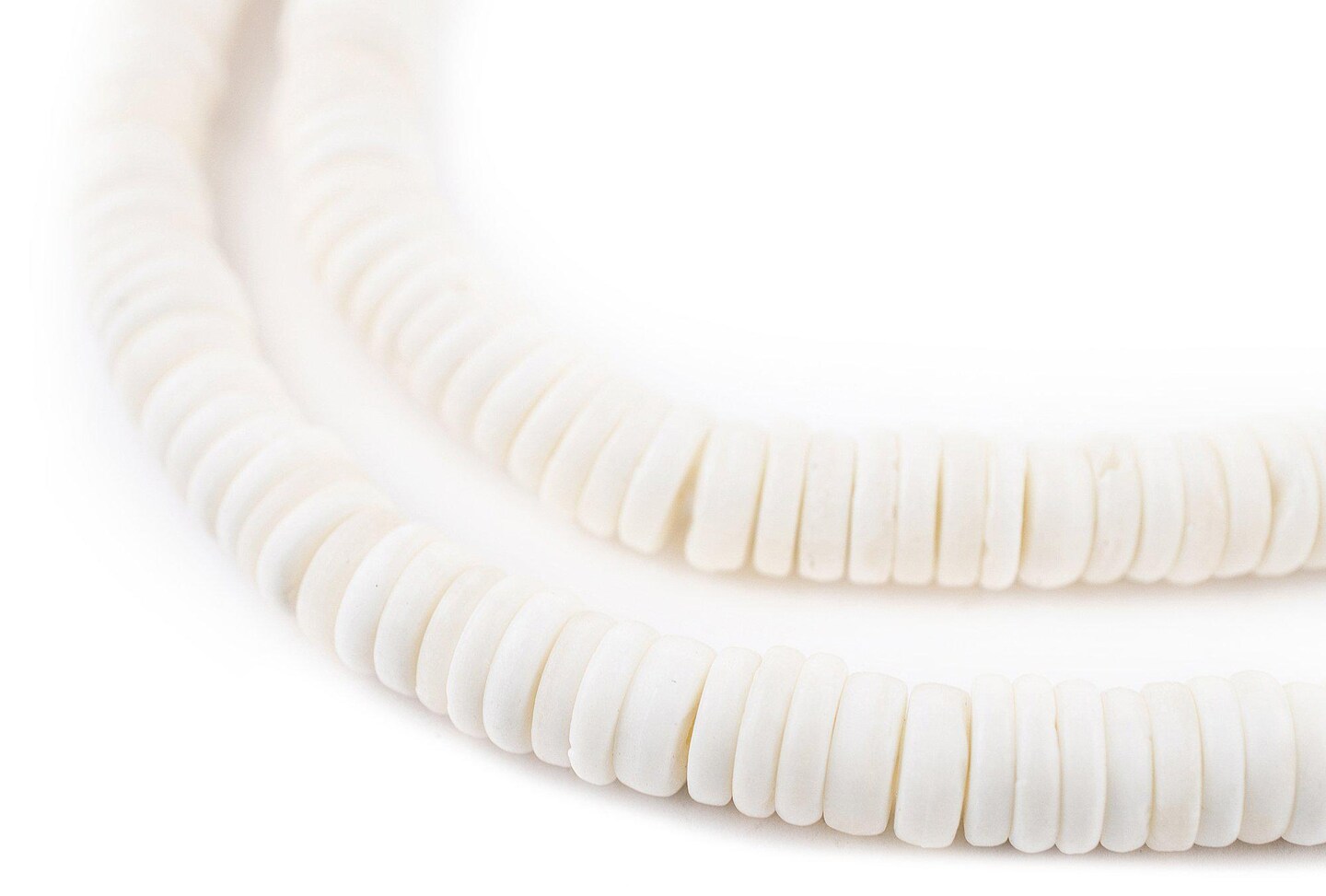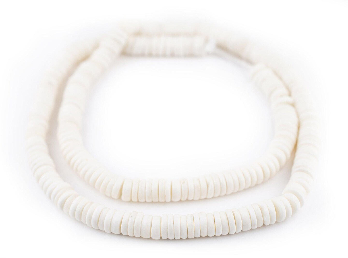 The Bead Chest 8mm White Bone Button Beads: Nepal Flat Round Disk Heishi Beads for DIY Necklace Jewelry Making