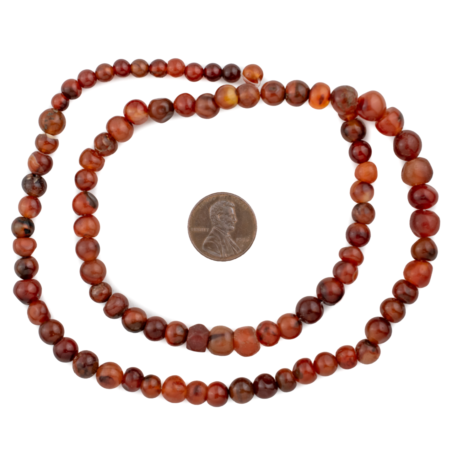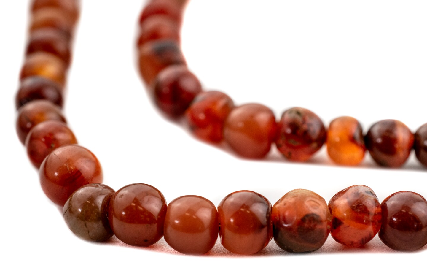 The Bead Chest African Carnelian Beads - Full Strand of Authentic Gemstone Beads from Ghana (Round - Small)