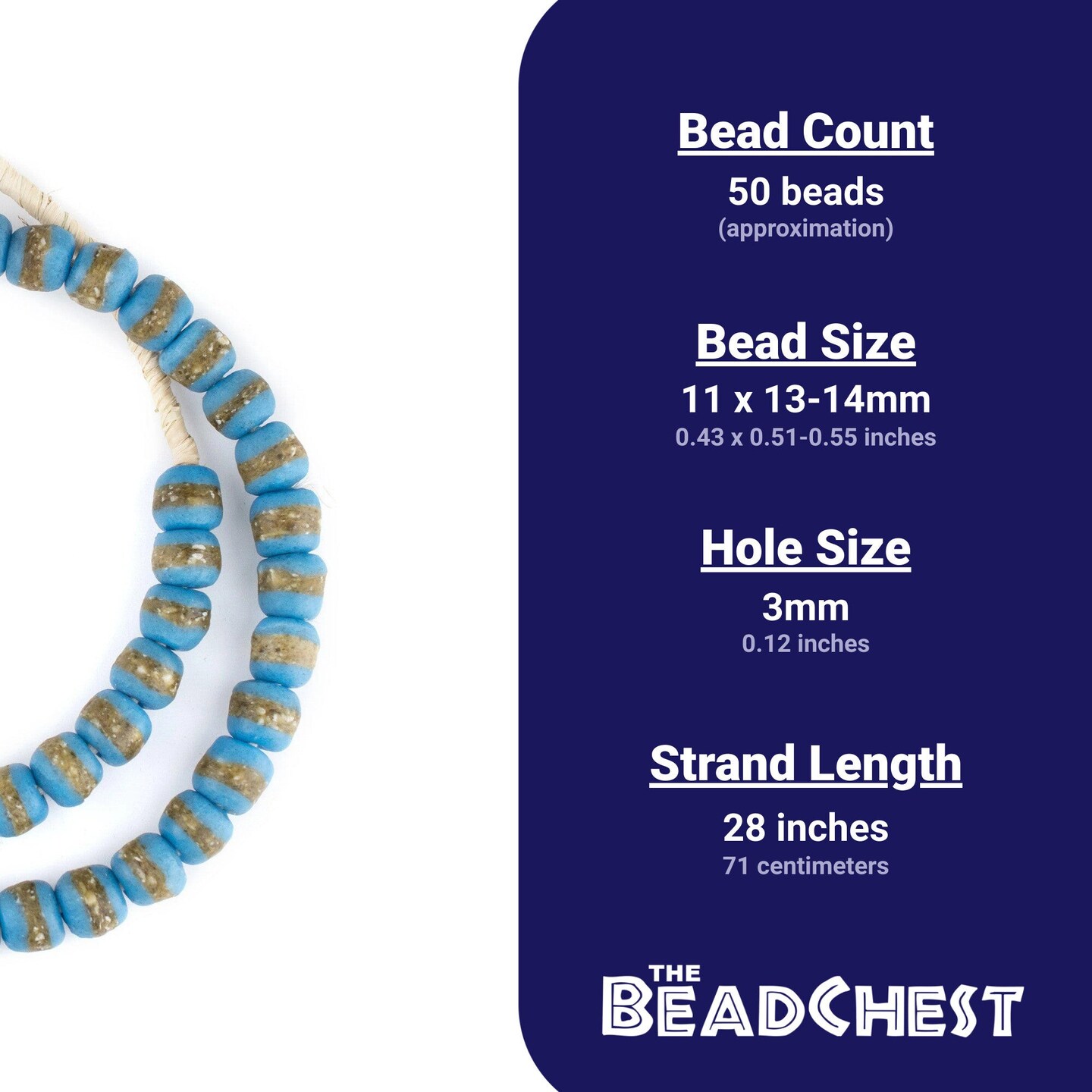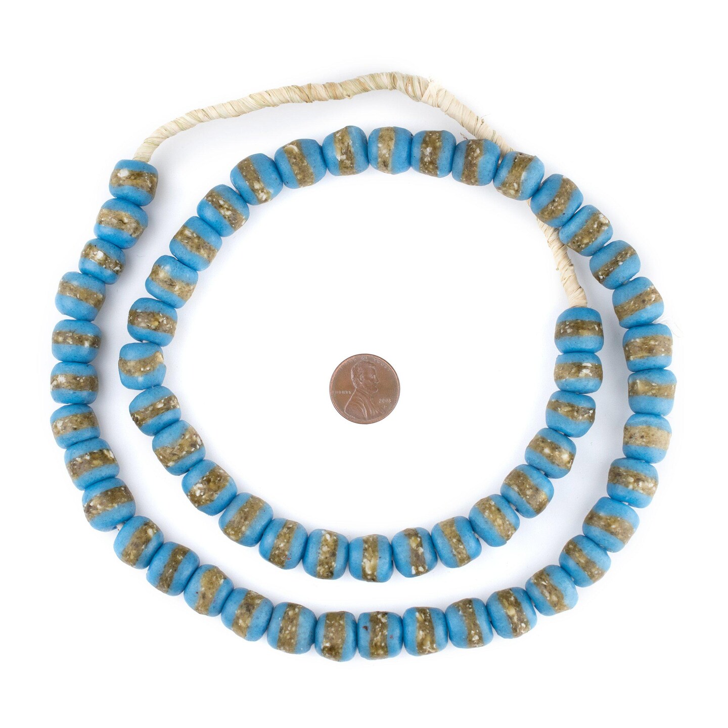 The Bead Chest African Kente Beads - Full Strand of Krobo Glass Beads (Light Blue)