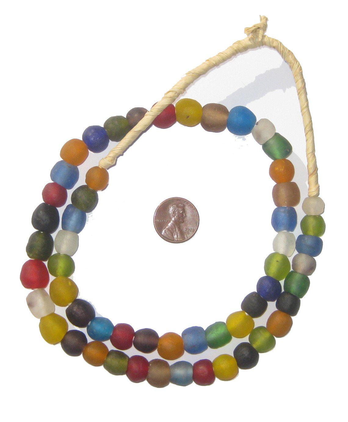 The Bead Chest African Recycled Glass Beads, 11mm - Full Strand Eco-Friendly Fair Trade Sea Glass Beads from Ghana Handmade Ethnic Round Spherical Tribal Boho Krobo Spacer Beads