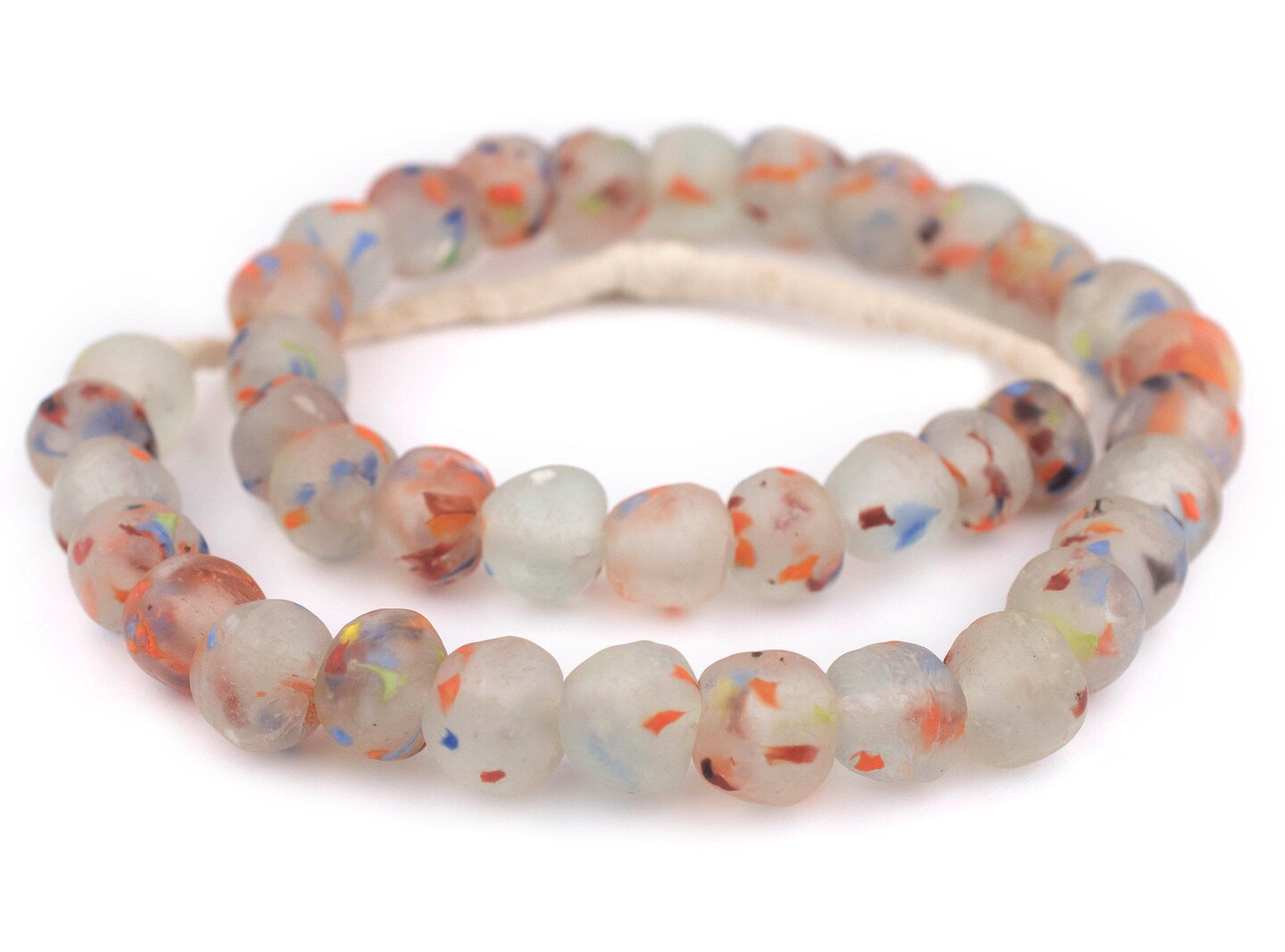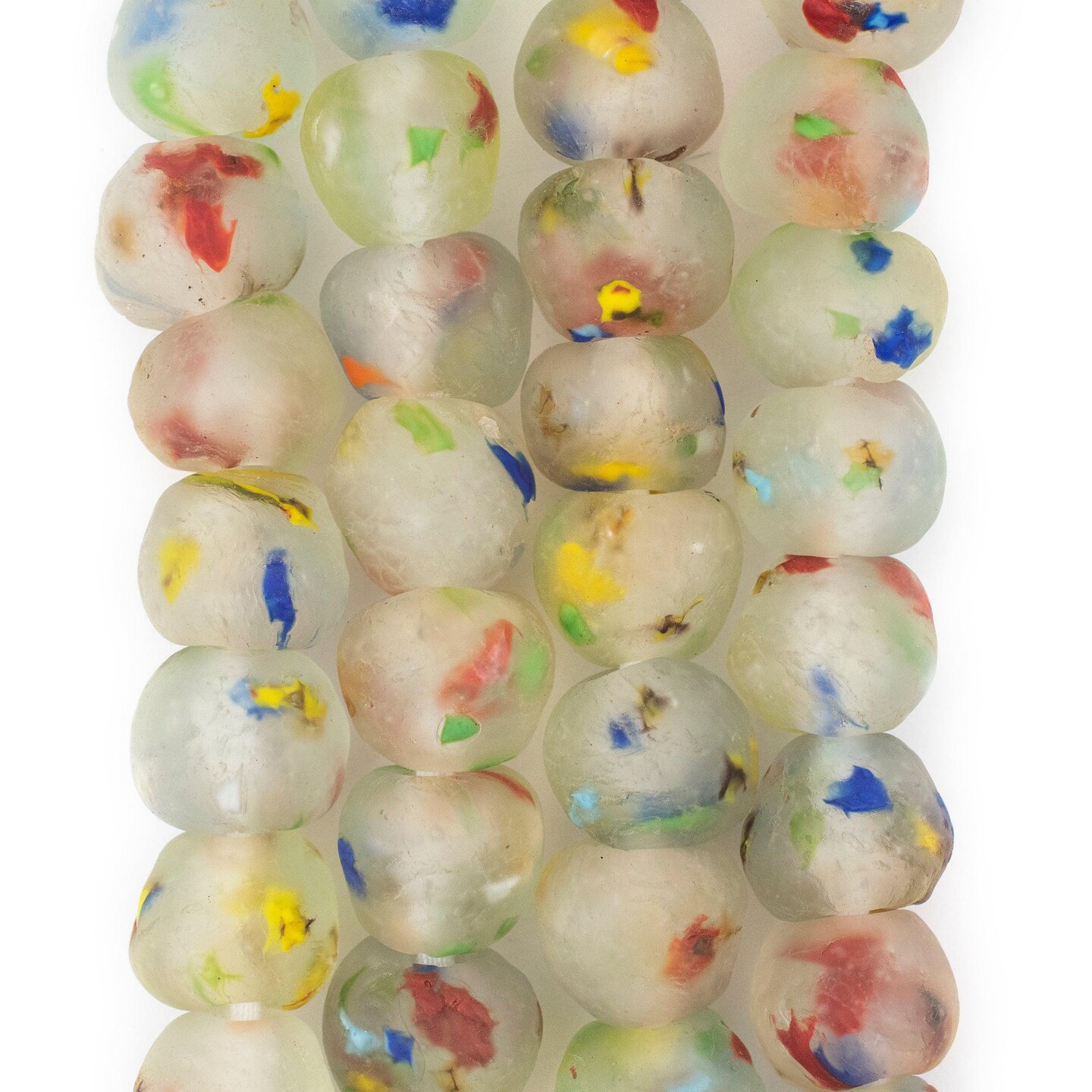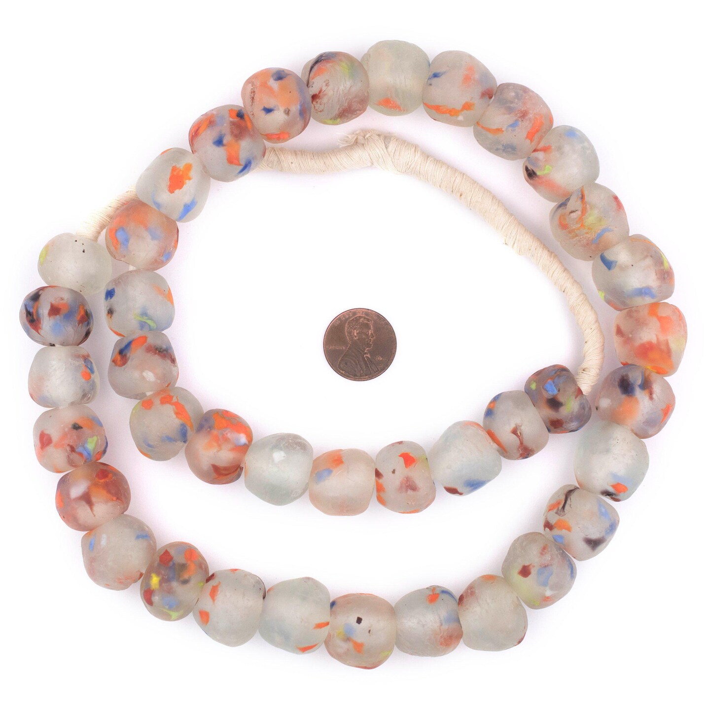 The Bead Chest African Recycled Glass Beads – Handmade in Ghana – Rainbow Speckled 18mm Strand for Jewelry Making, Crafts, and Home Decor I Approximately 37 Beads