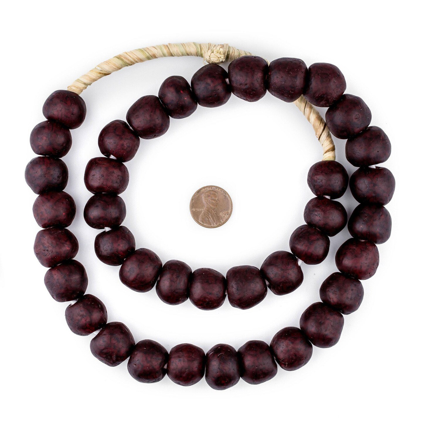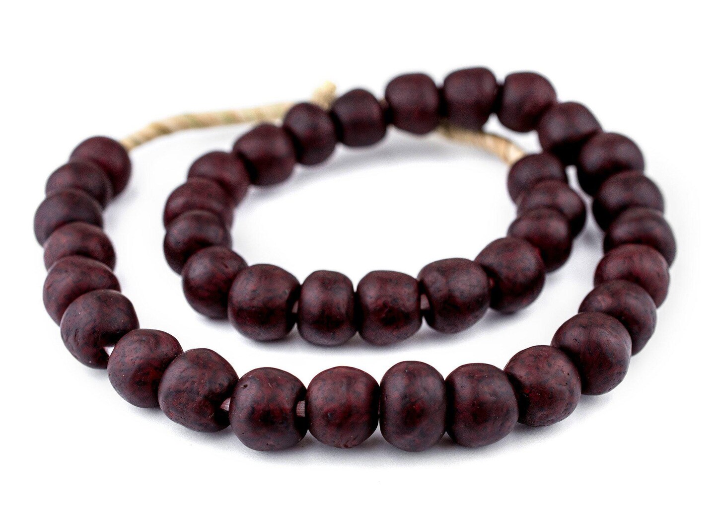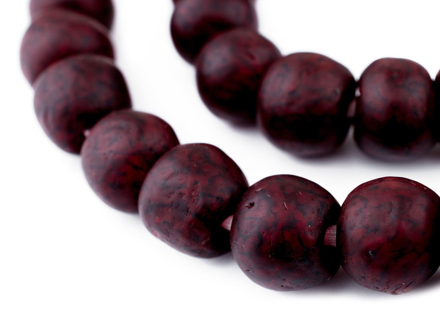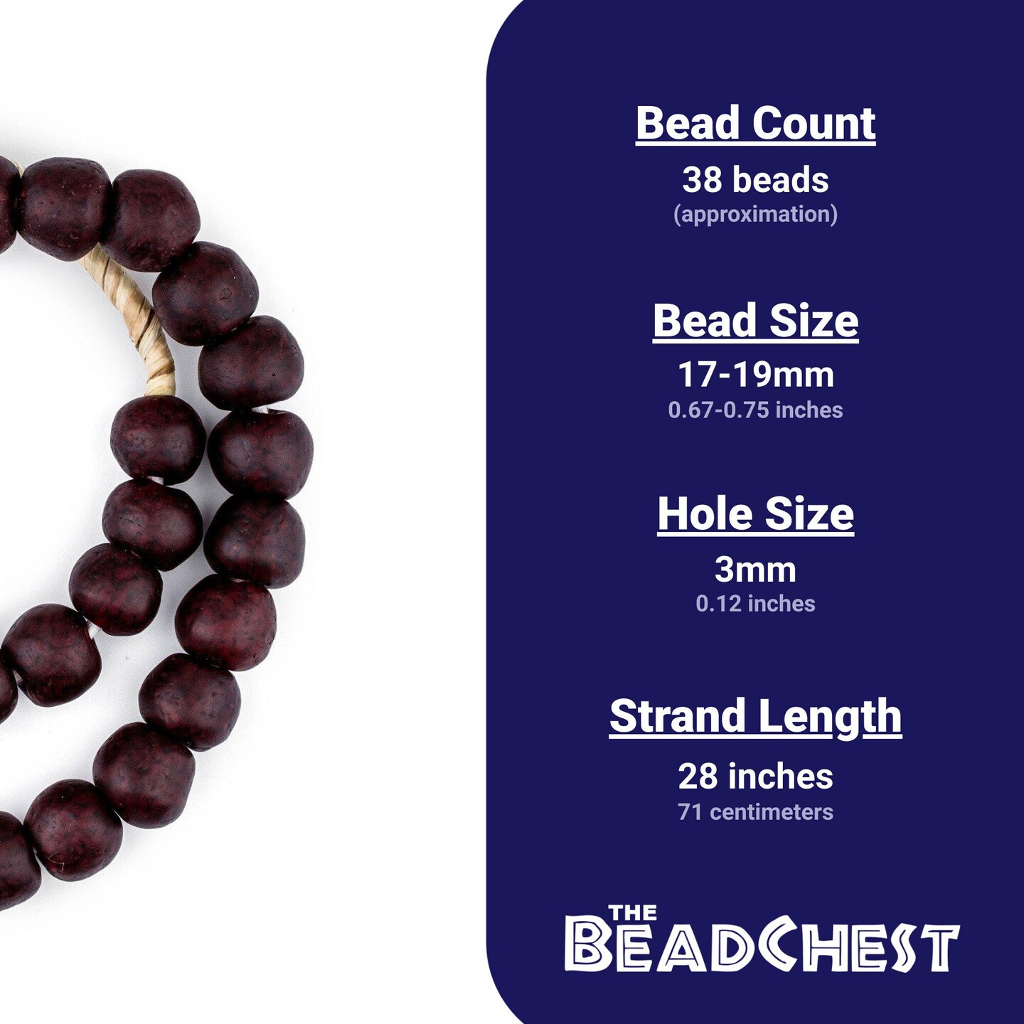 The Bead Chest African Recycled Glass Beads – Handmade in Ghana – Red Black Swirl 18mm Strand for Jewelry Making, Crafts, and Home Decor I Approximately 38 Beads