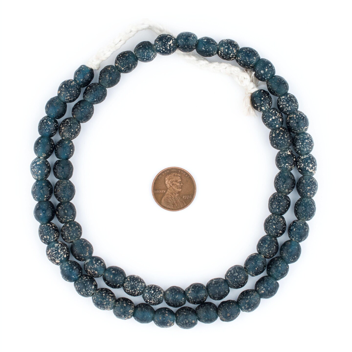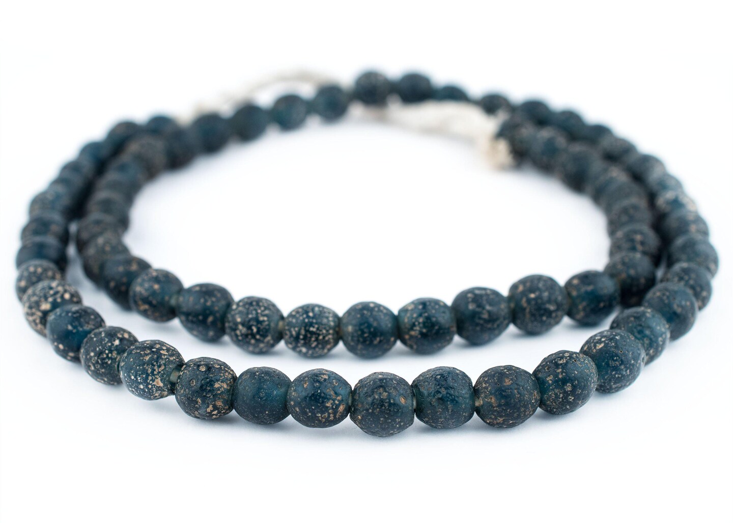 The Bead Chest Ancient-Style Java Glass Beads, Round Indonesian Handmade Fair Trade Etched Spacers for DIY Jewelry Making and Crafts (Dark Blue)