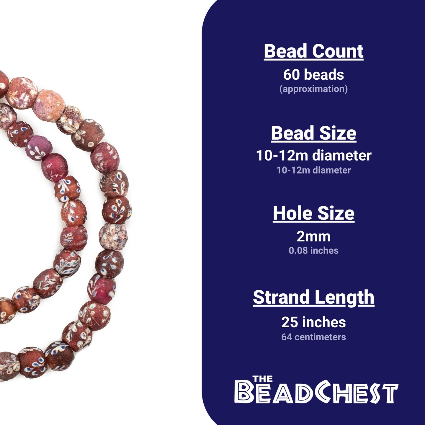 The Bead Chest Antique Venetian Flower White Heart Beads 11mm Ethiopia African Red Round Glass Large Hole 25 Inch Strand Handmade