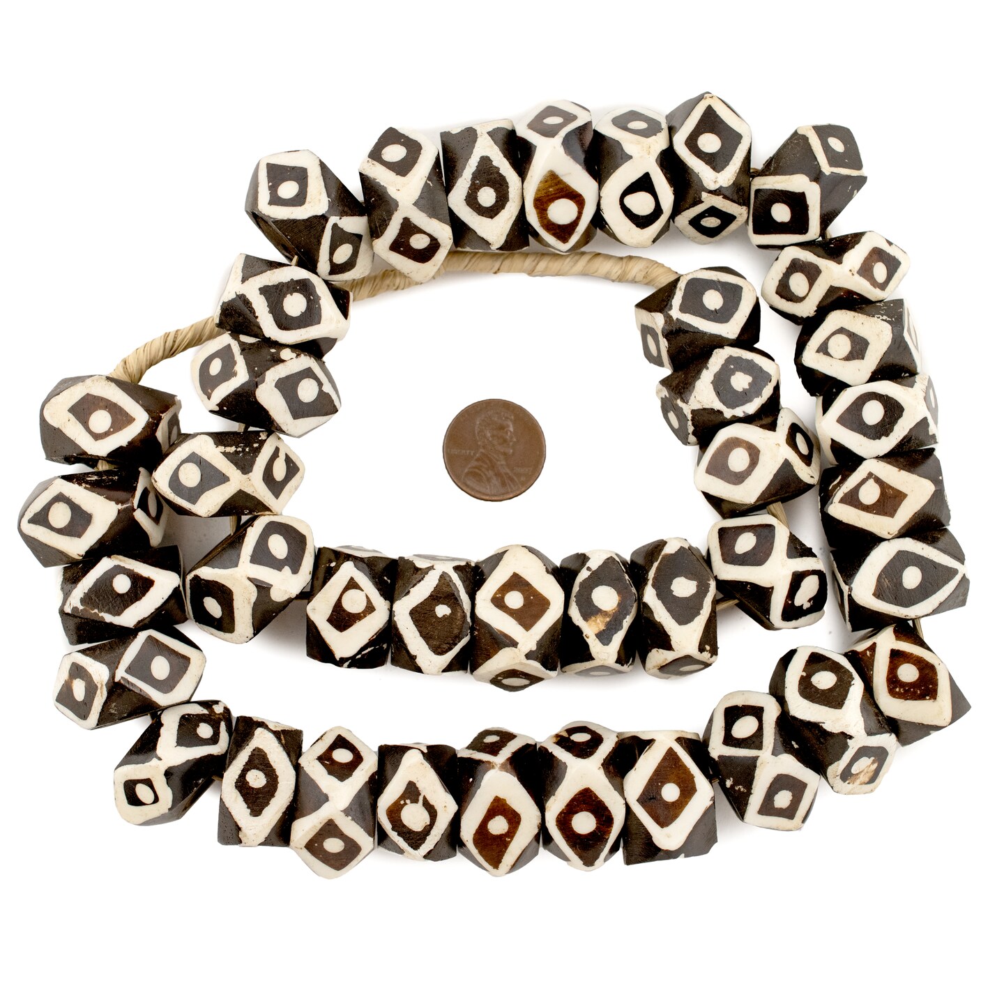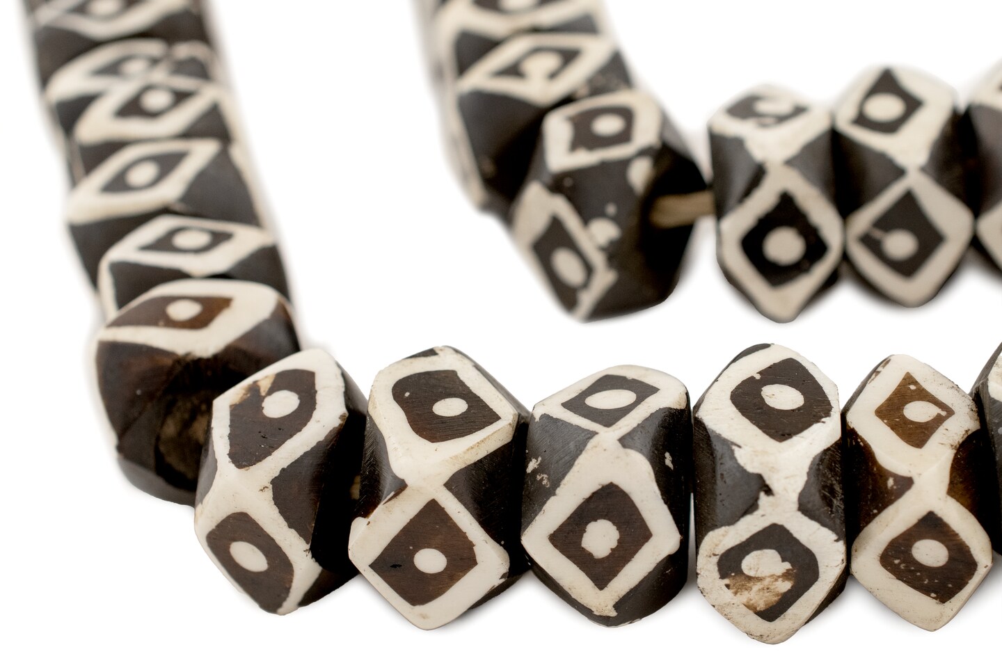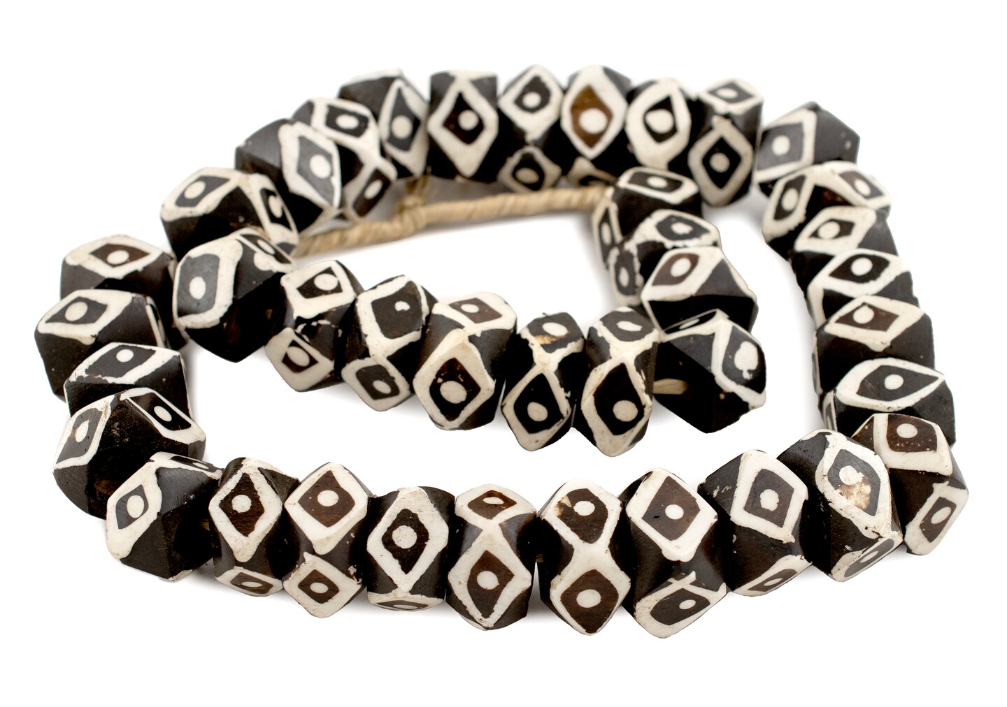 The Bead Chest Batik Bone Beads - Full Strand of Fair Trade African Beads (Faceted, Eye Design)