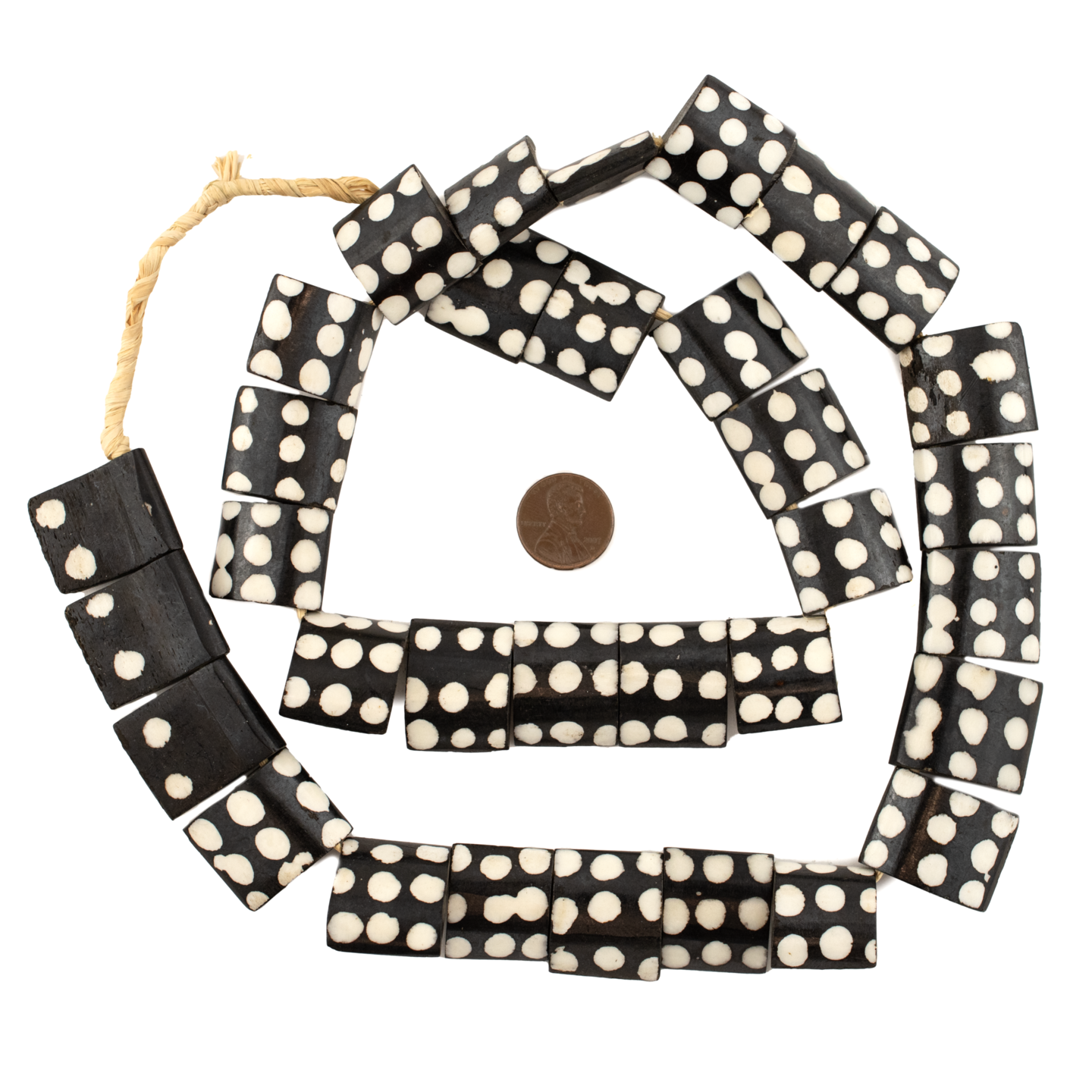 The Bead Chest Batik Bone Beads - Full Strand of Fair Trade African Beads (Rectangle, Polka Dot Design)