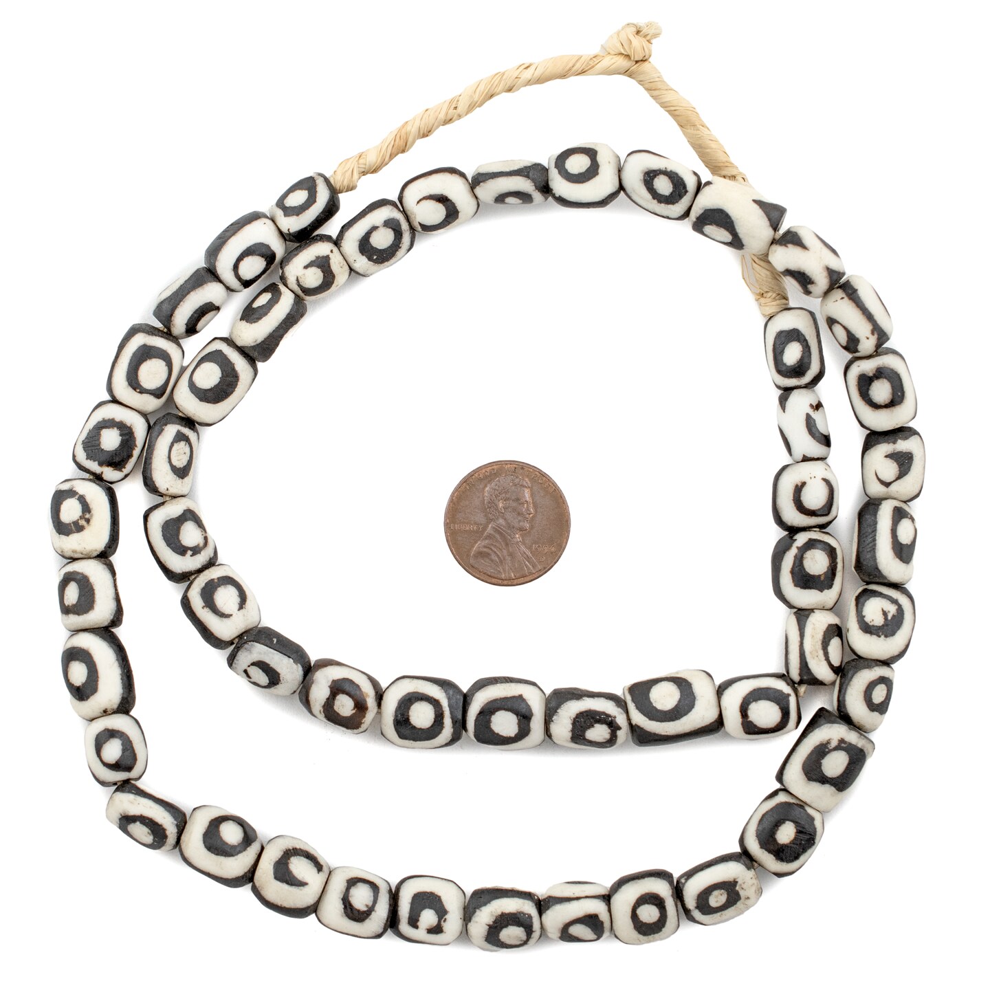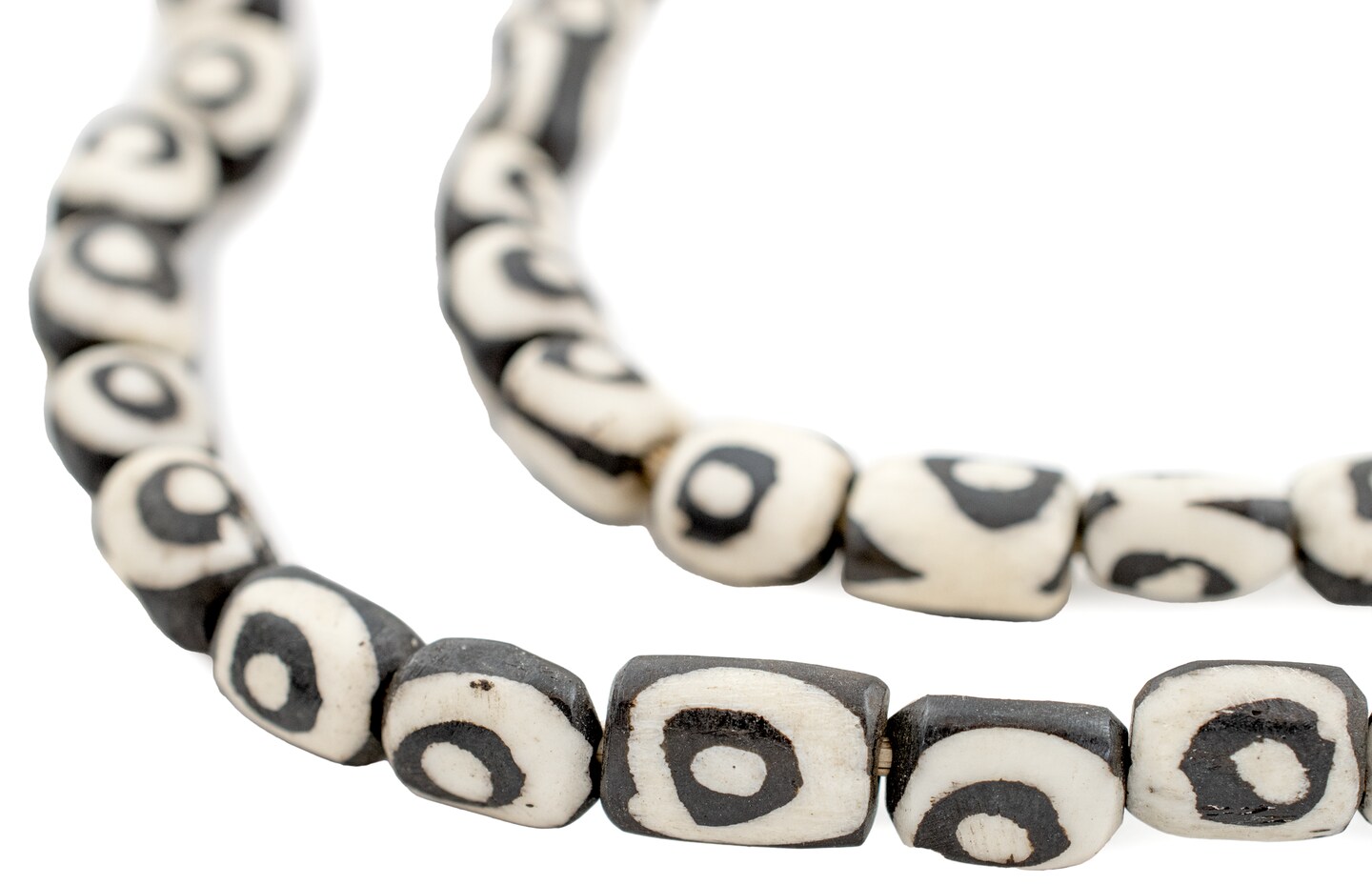 The Bead Chest Batik Bone Beads - Full Strand of Fair Trade African Beads (Small, Eye Design)