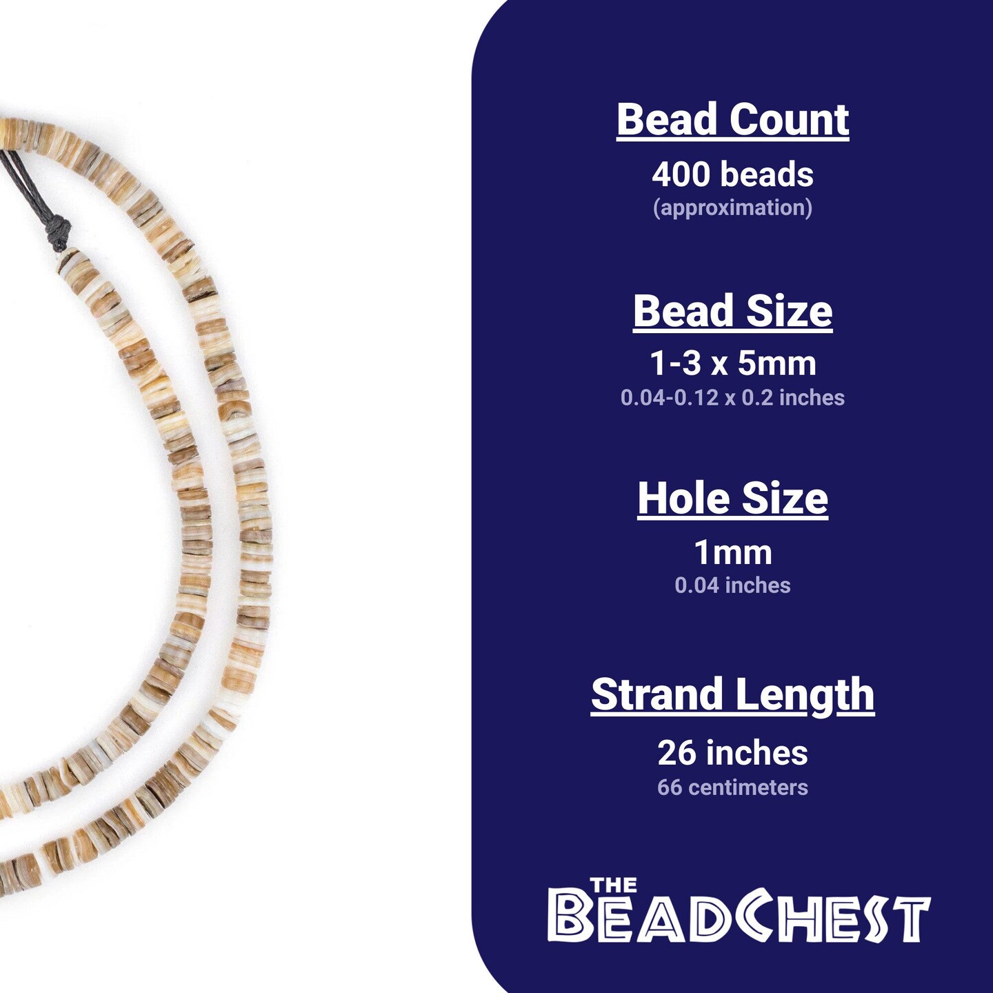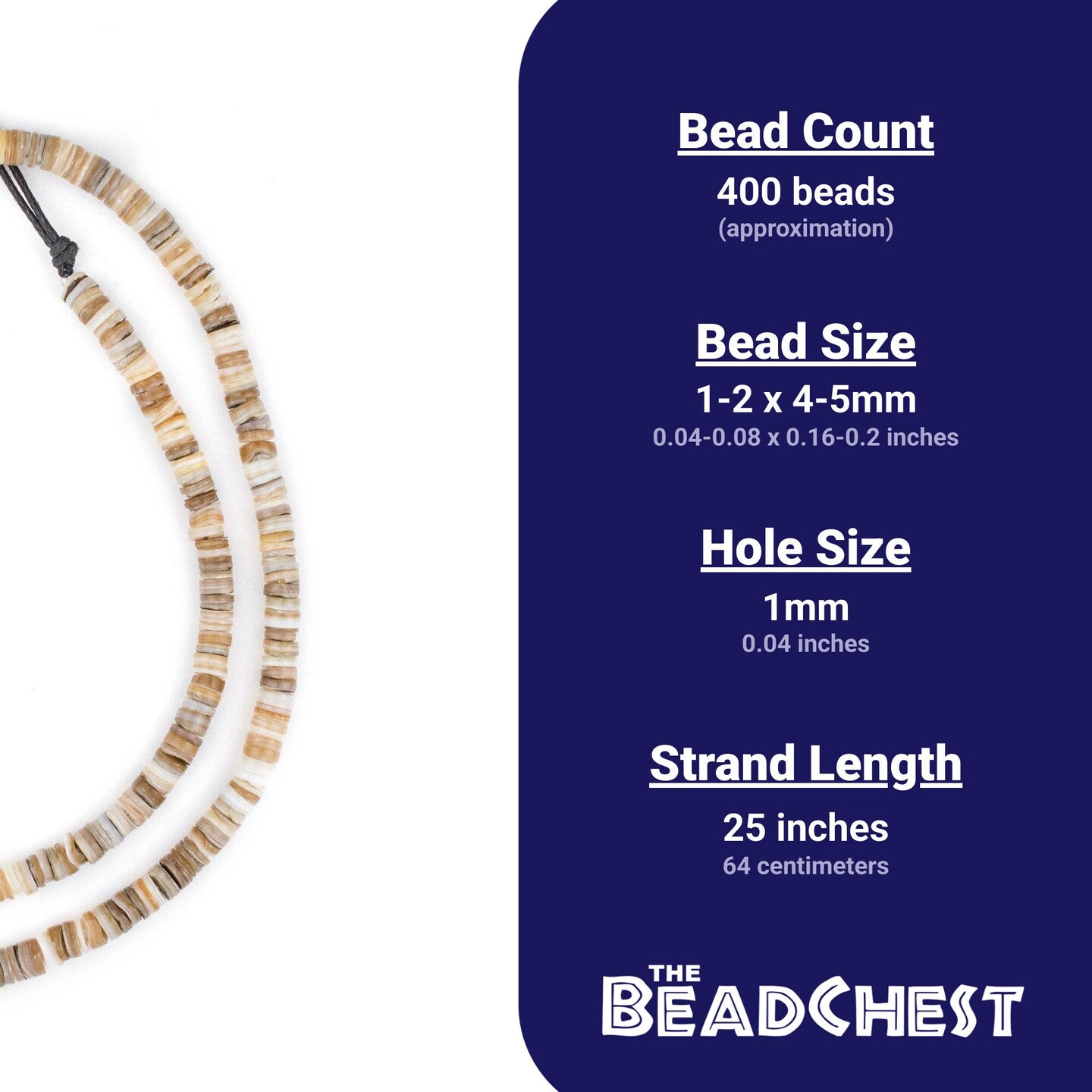 The Bead Chest Beige Natural Shell Heishi Beads 5mm Brown 25 Inch Strand
