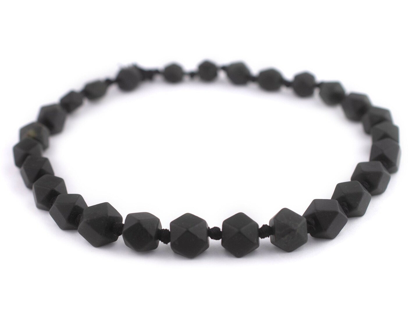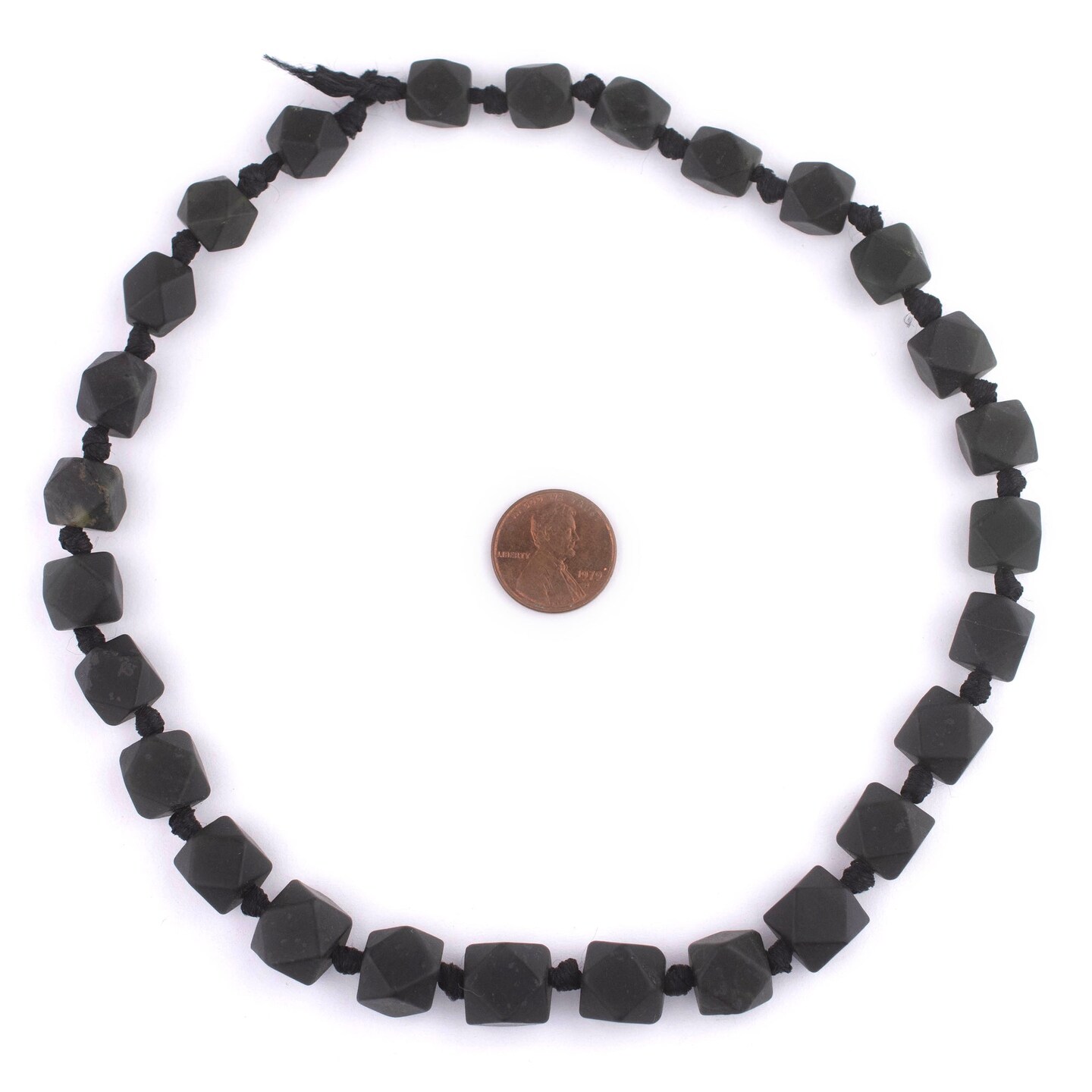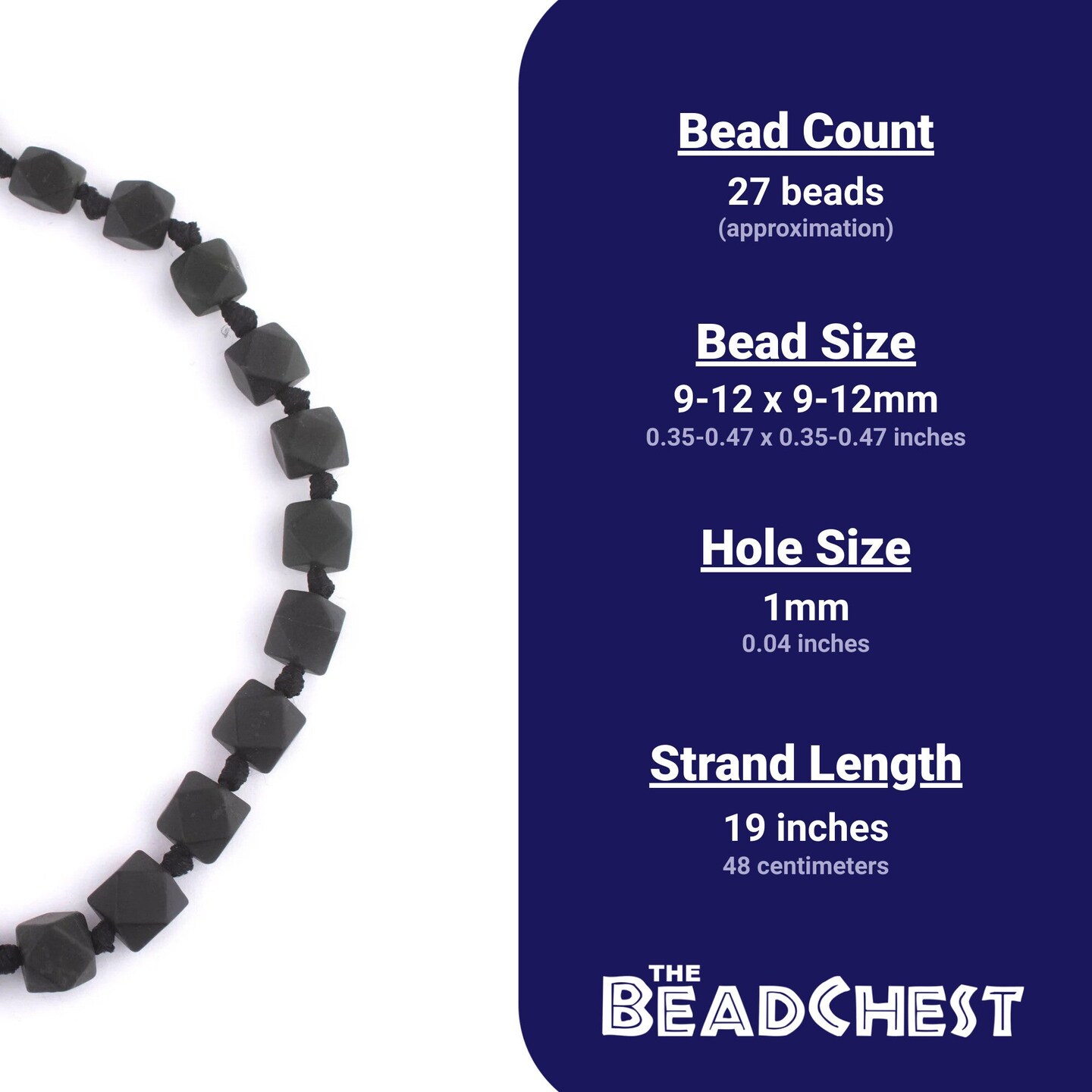 The Bead Chest Black Cornerless Cube Serpentine Beads 9-12mm Afghanistan Faceted Gemstone 19 Inch Strand