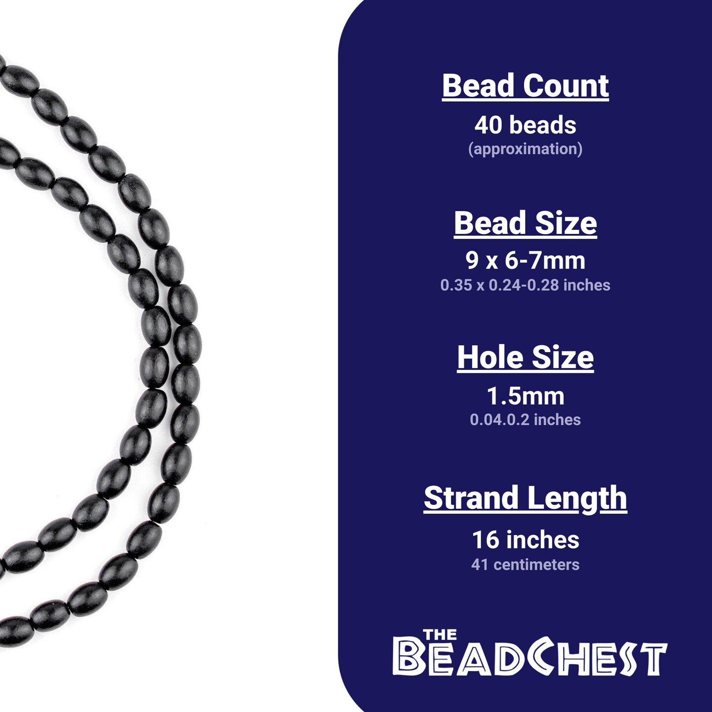 The Bead Chest Black Oval Natural Wood Beads (9x6mm): Organic Eco-Friendly Wooden Bead Strand for DIY Jewelry, Crafts, Necklace and Bracelet Making