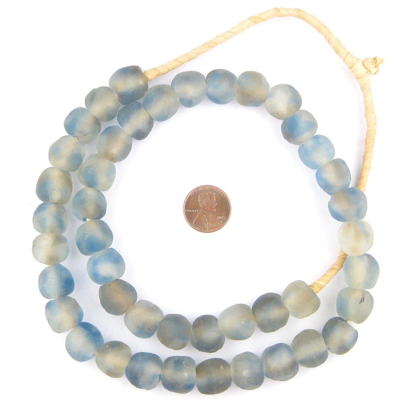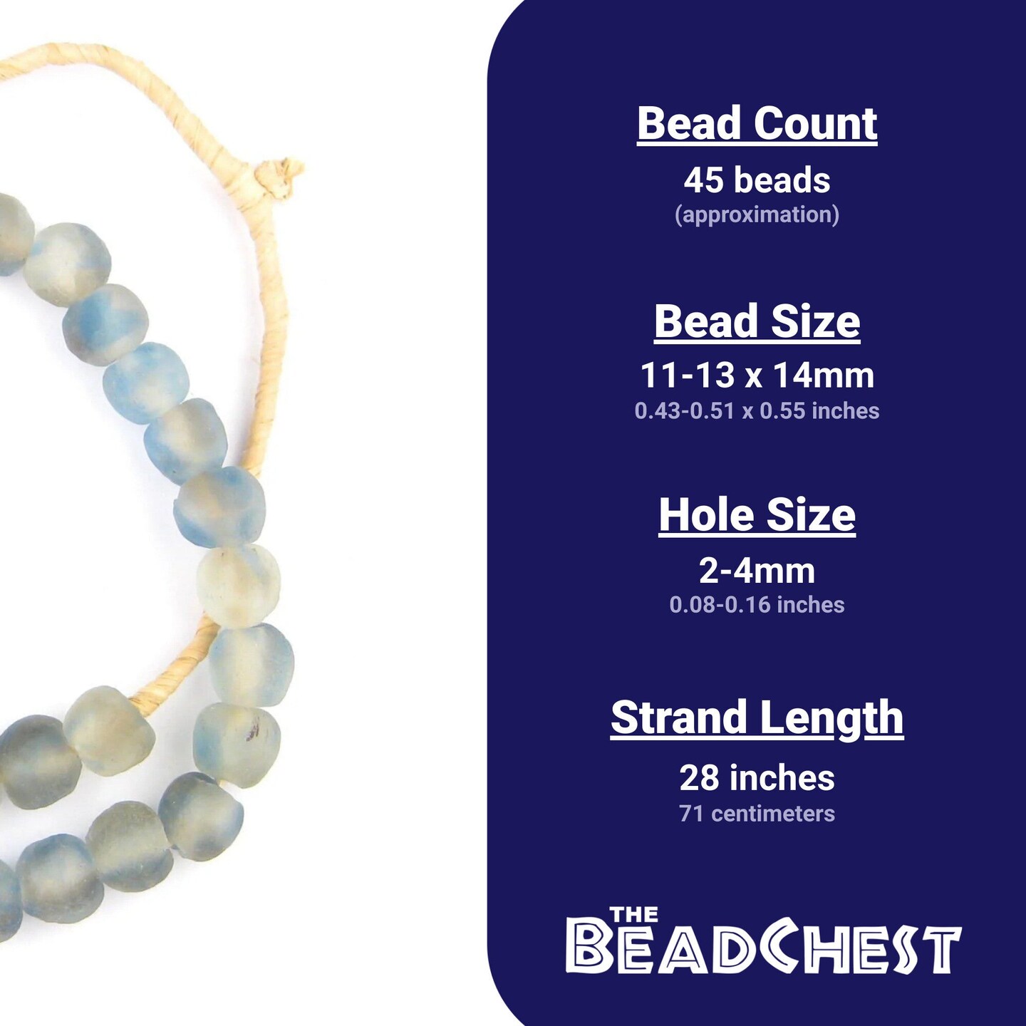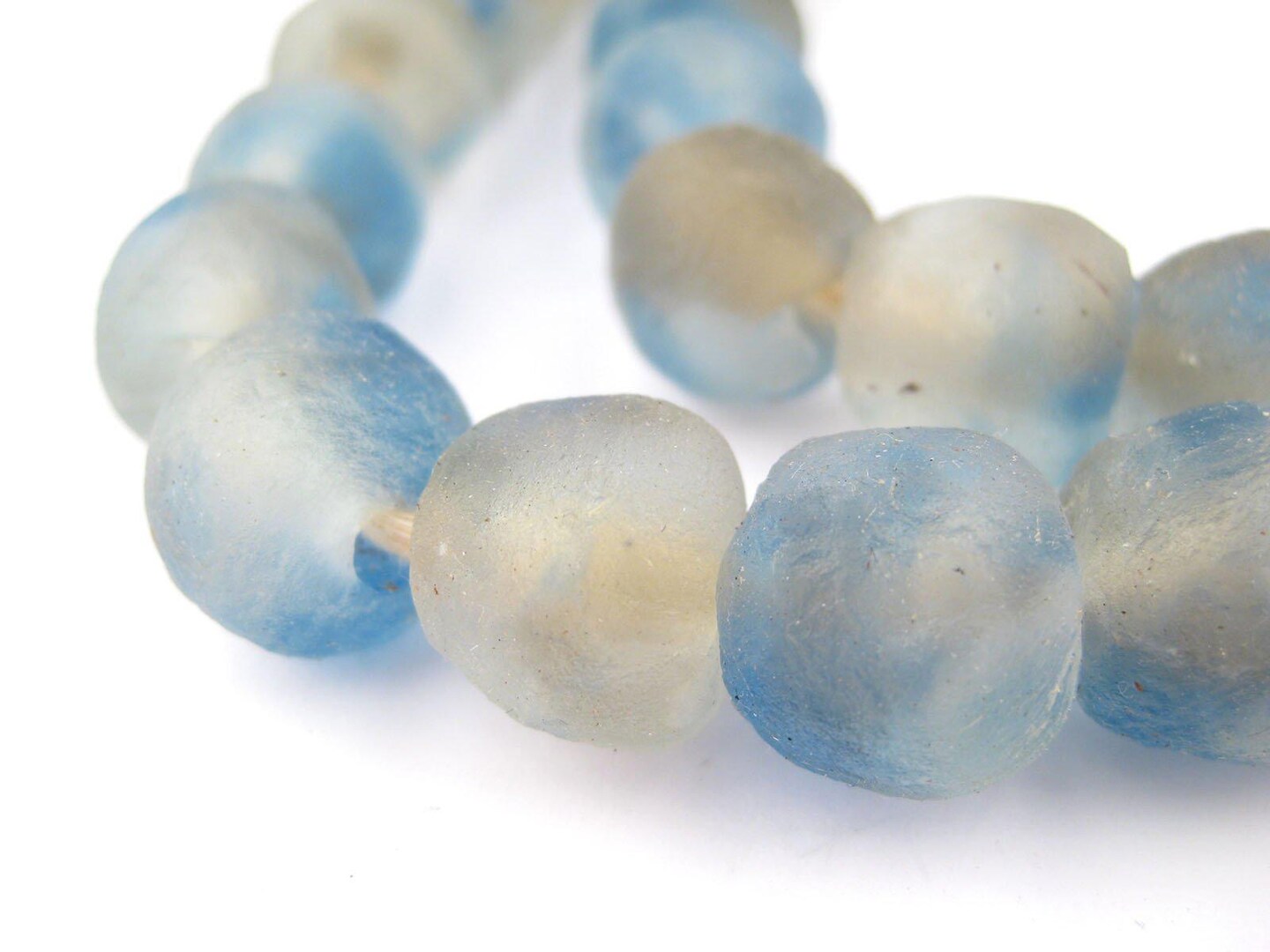 The Bead Chest Blue Grey Mist Recycled Glass Beads 14mm Ghana African Sea Glass Multicolor Round Large Hole 28 Inch Strand Handmade Fair Trade