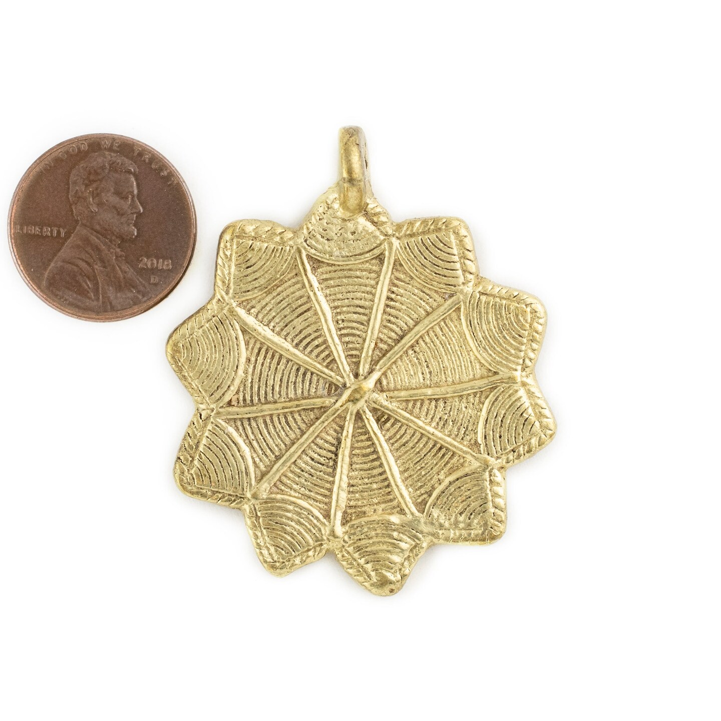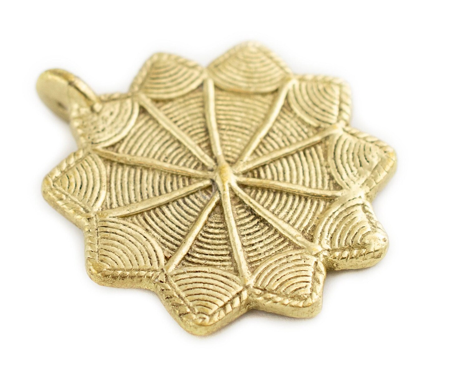 The Bead Chest Brass 10-Point Baule Star Pendant 41x47mm Ivory Coast African Large Hole Handmade