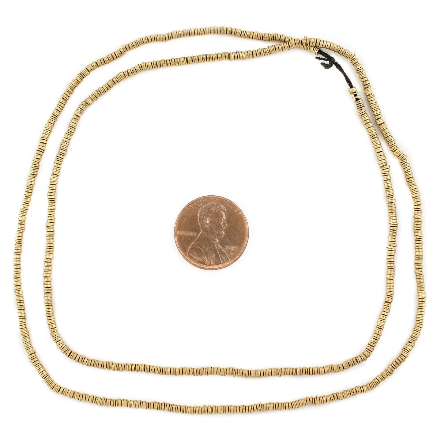 The Bead Chest Brass Flat Disk Heishi Beads (2mm), 24" Strand, Handmade for Jewelry Making & Crafts | Approximately 1400 Beads