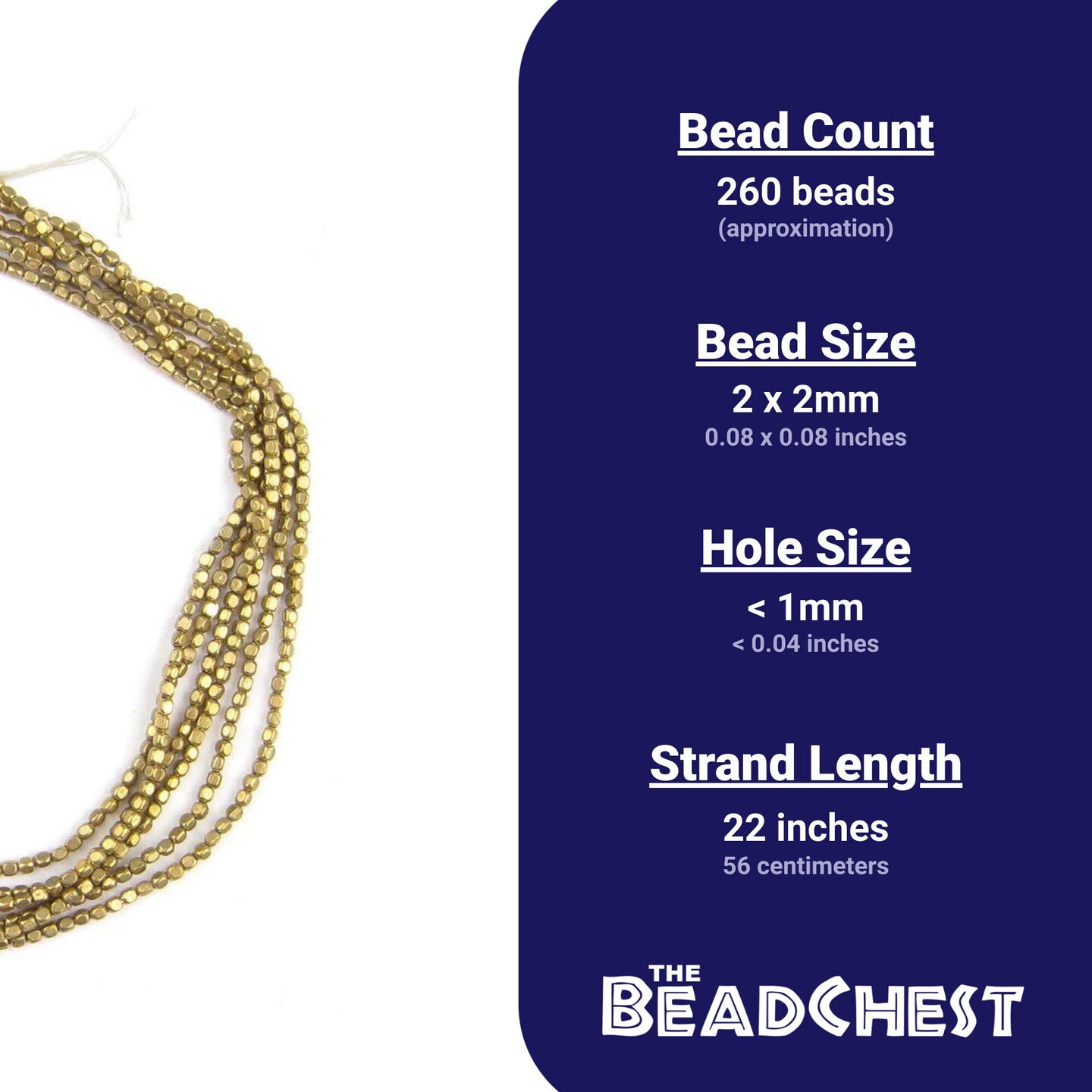 The Bead Chest Brass Rounded Rectangle Beads 2mm Cube 22 Inch Strand