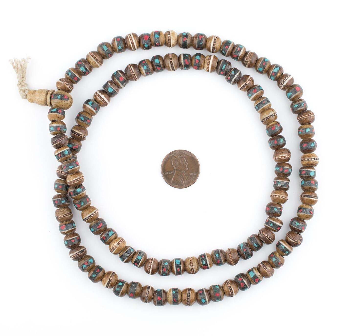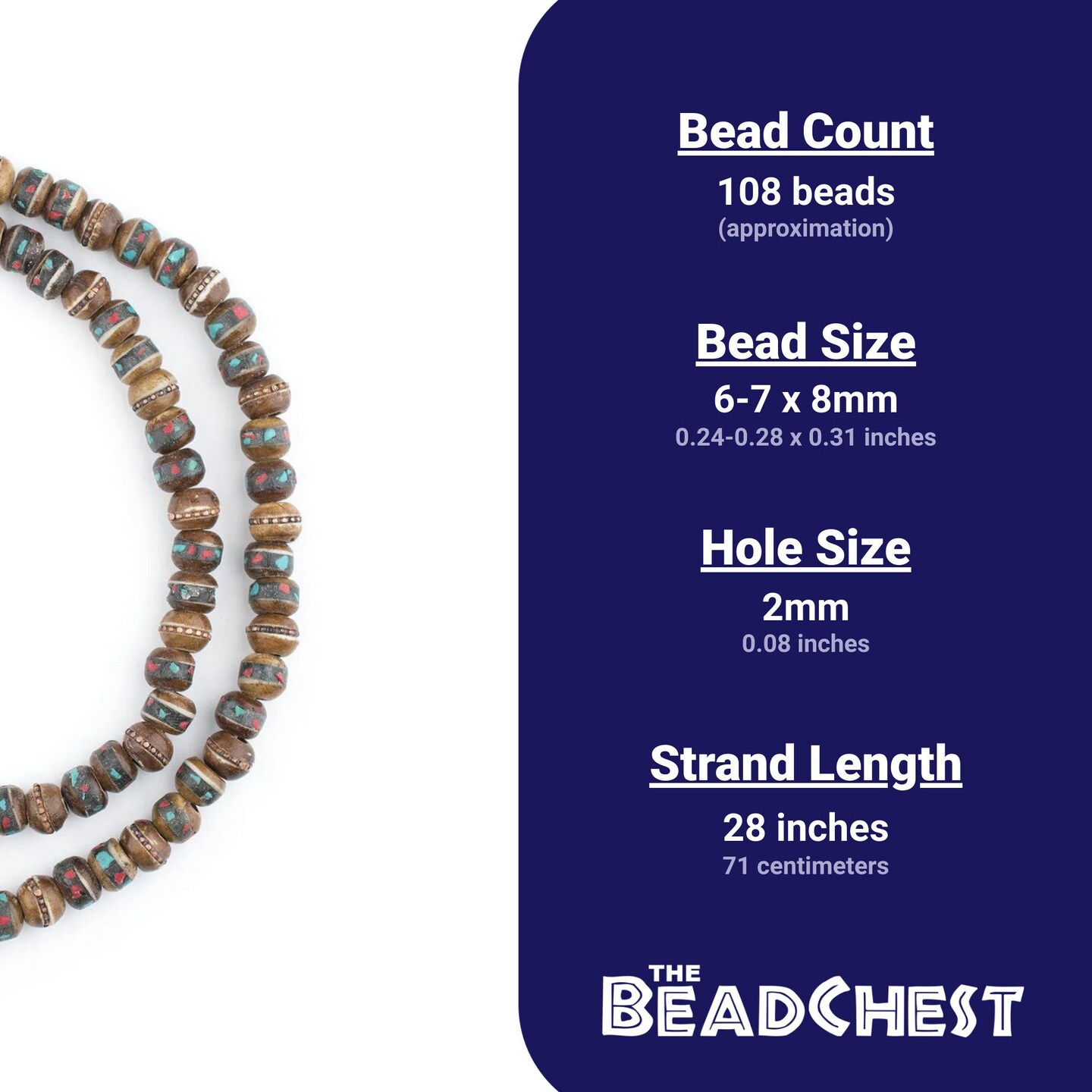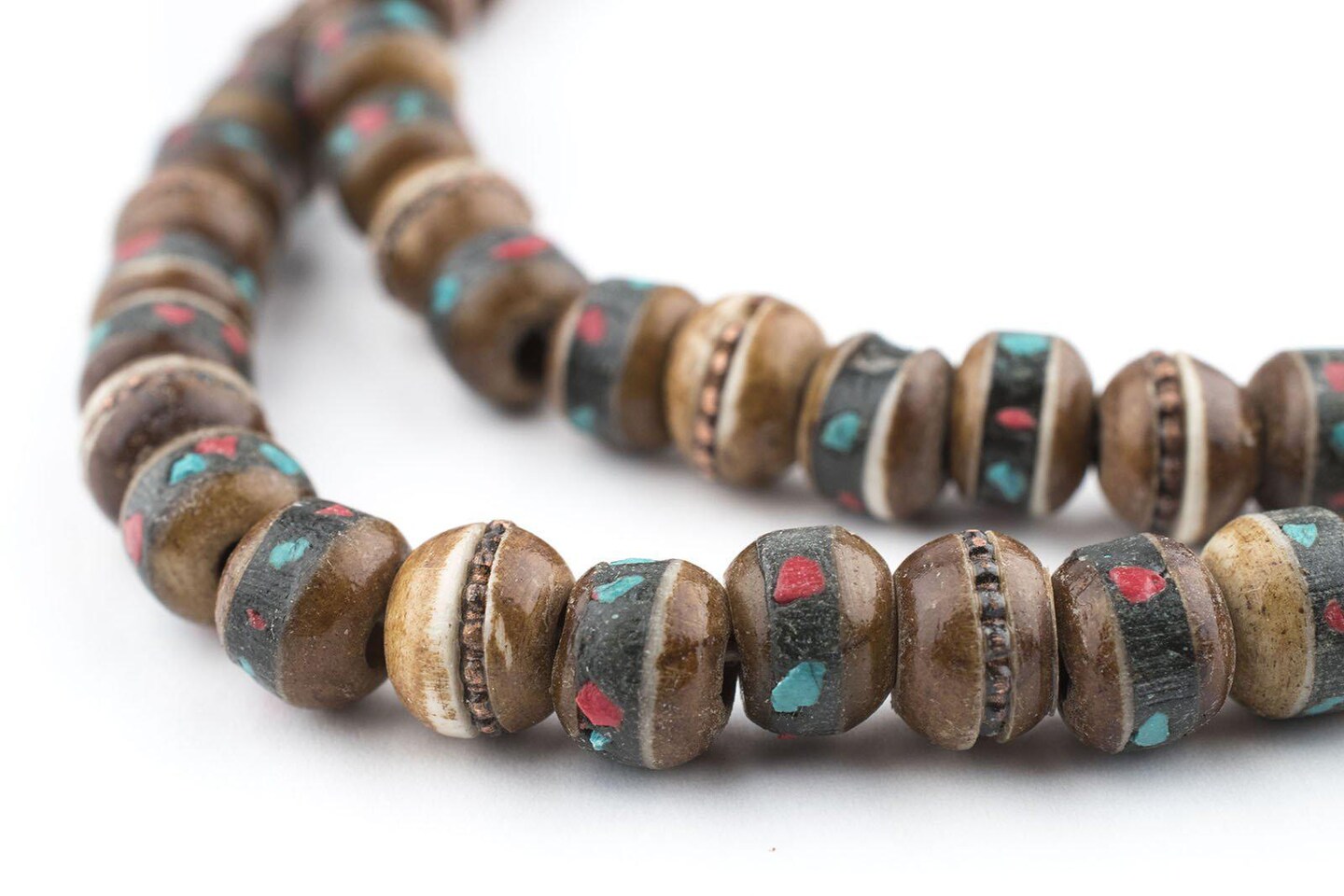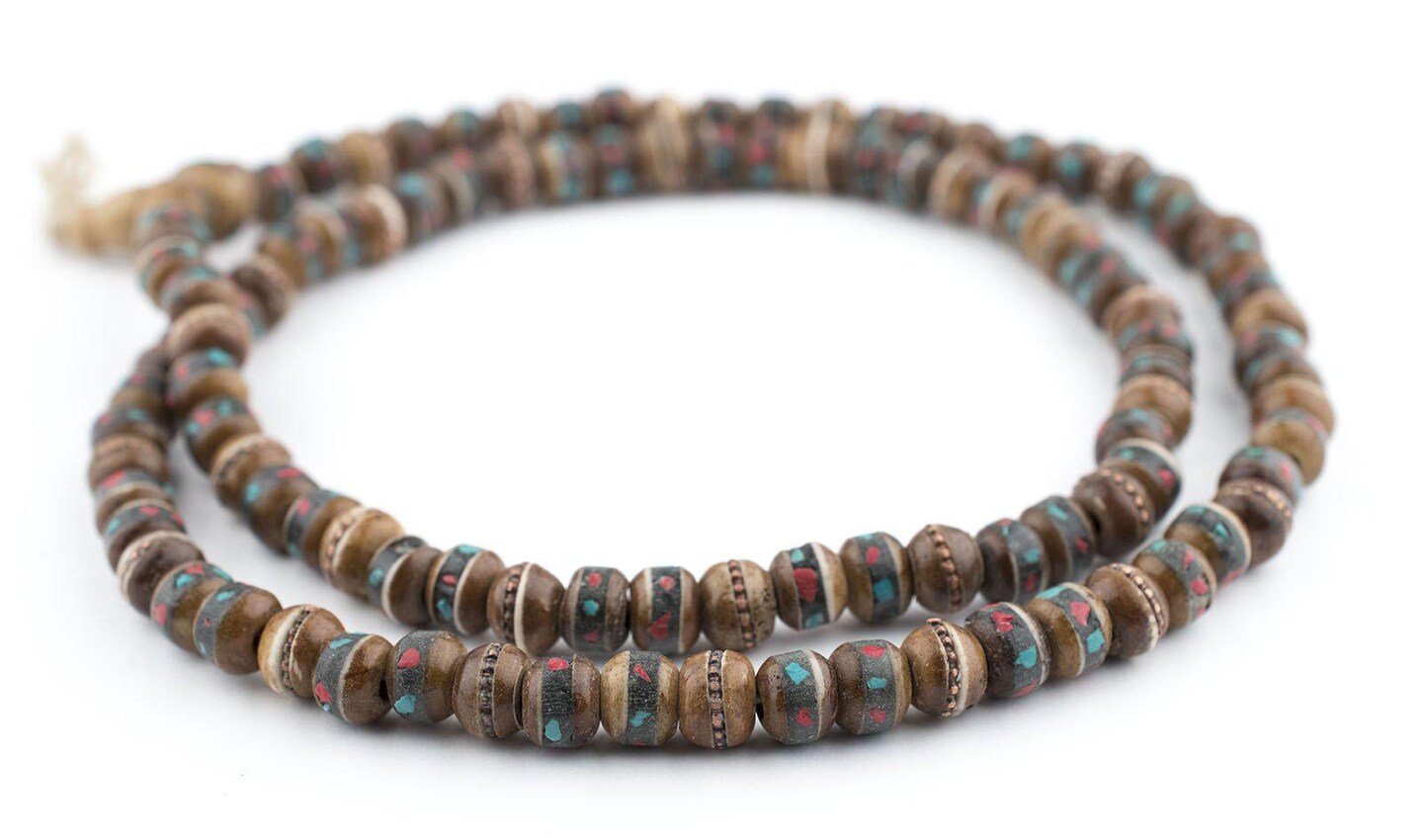 The Bead Chest Brown Inlaid Yak Bone Mala Beads (8mm)