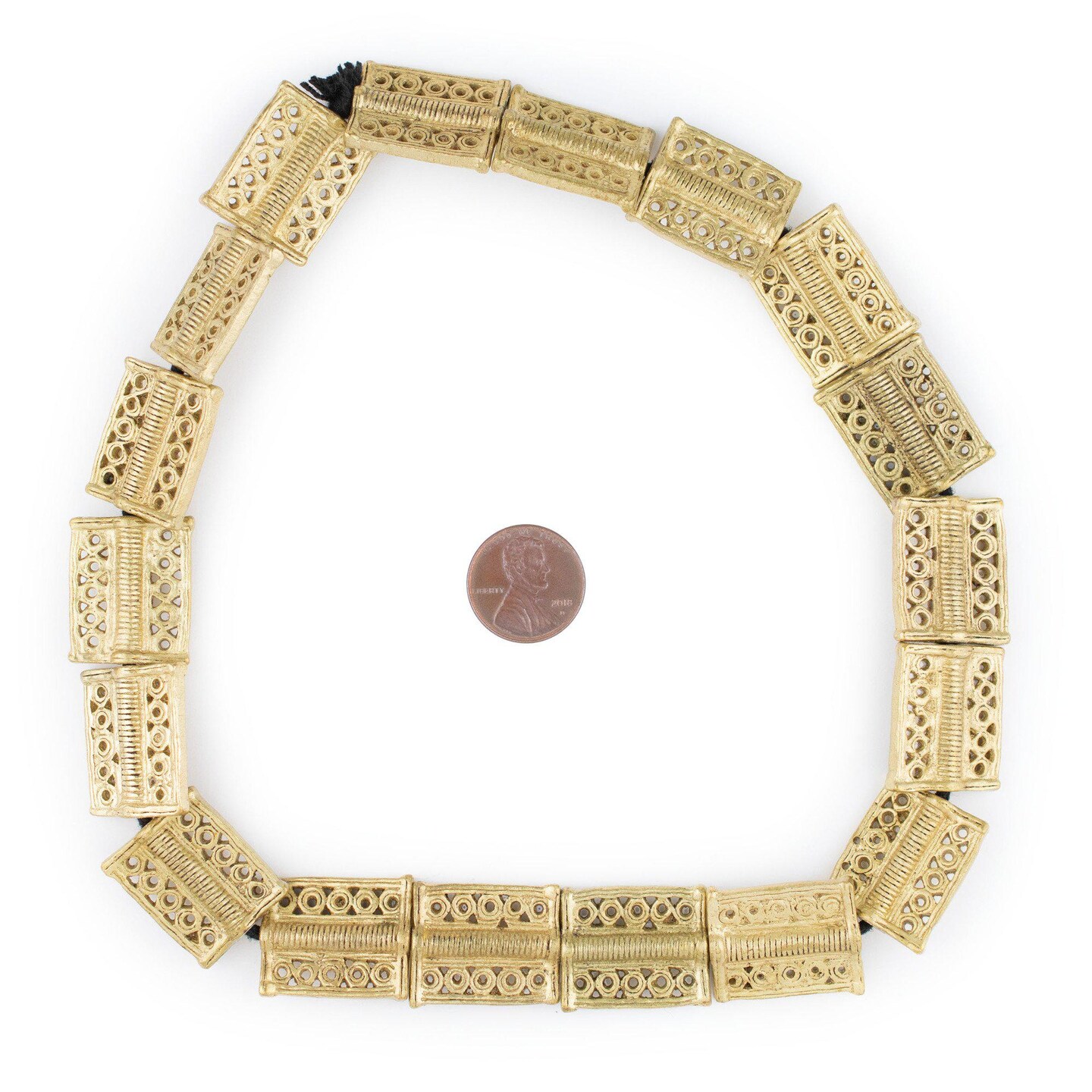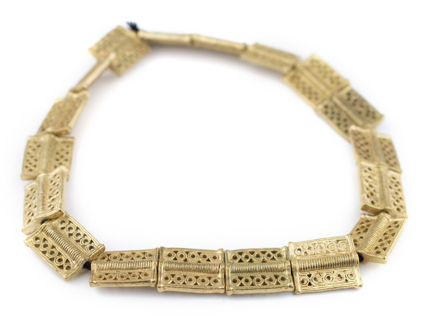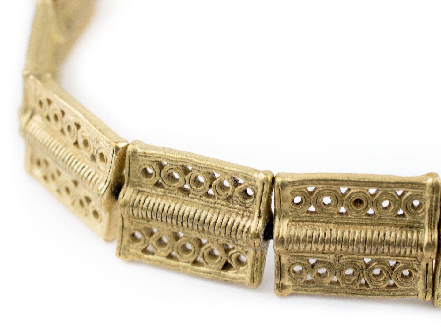 The Bead Chest Circle-Pattern Rectangular Baule Brass Beads 24x20mm Ivory Coast African Flat Large Hole 16 Inch Strand Handmade