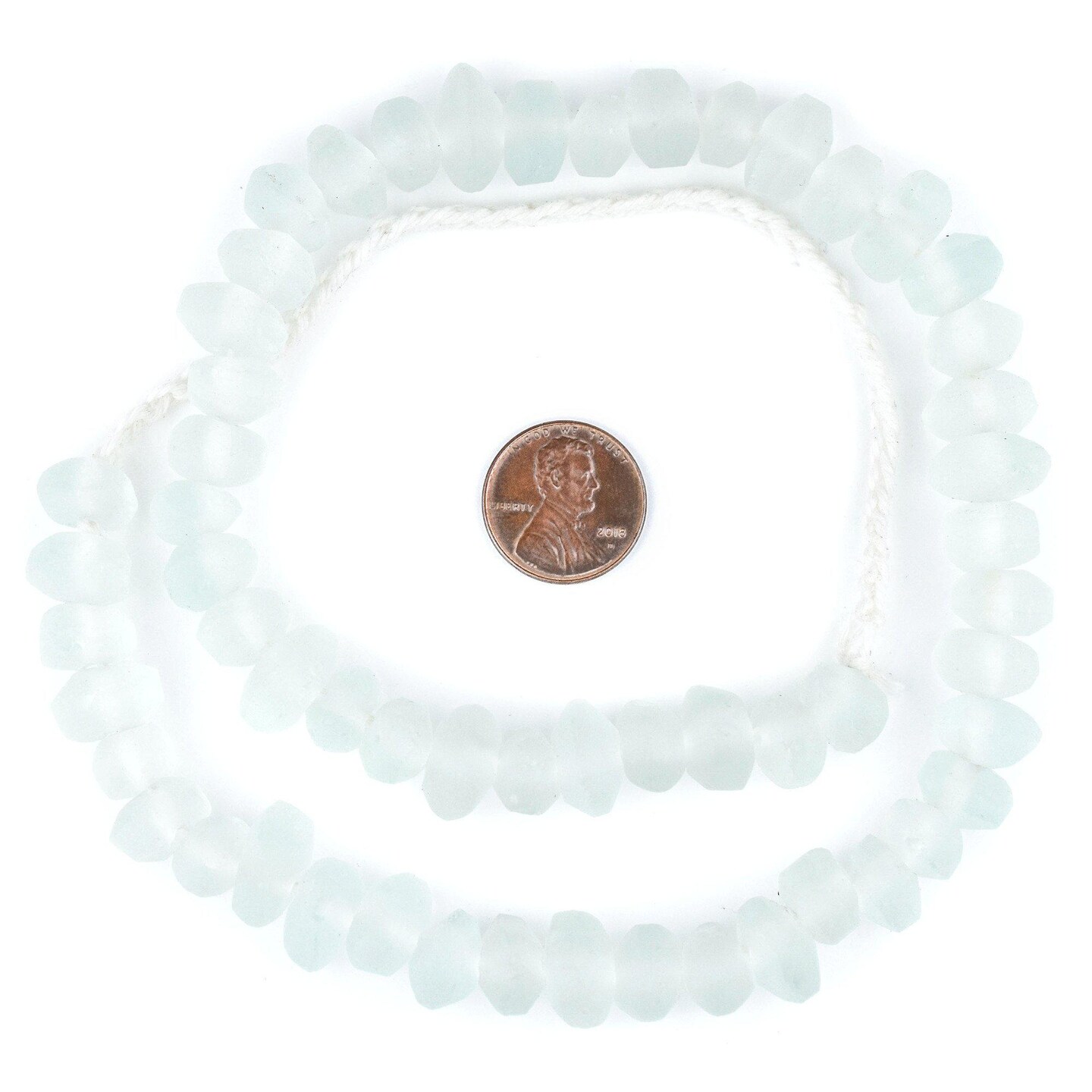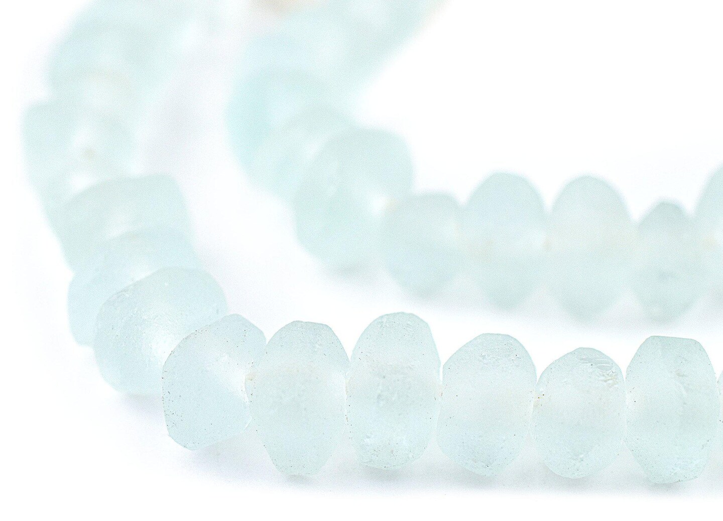 The Bead Chest Clear Aqua Rondelle Java Recycled Glass Beads (6x10mm)
