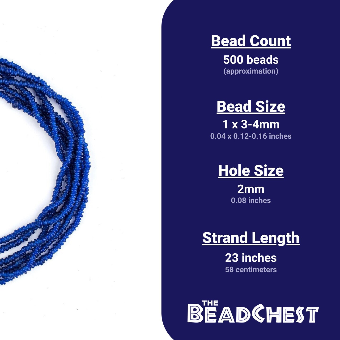 The Bead Chest Cobalt Blue 4mm Glass Heishi Beads - 23" Strand of Indonesian Java Spacer Beads for Crafts & Jewelry Making