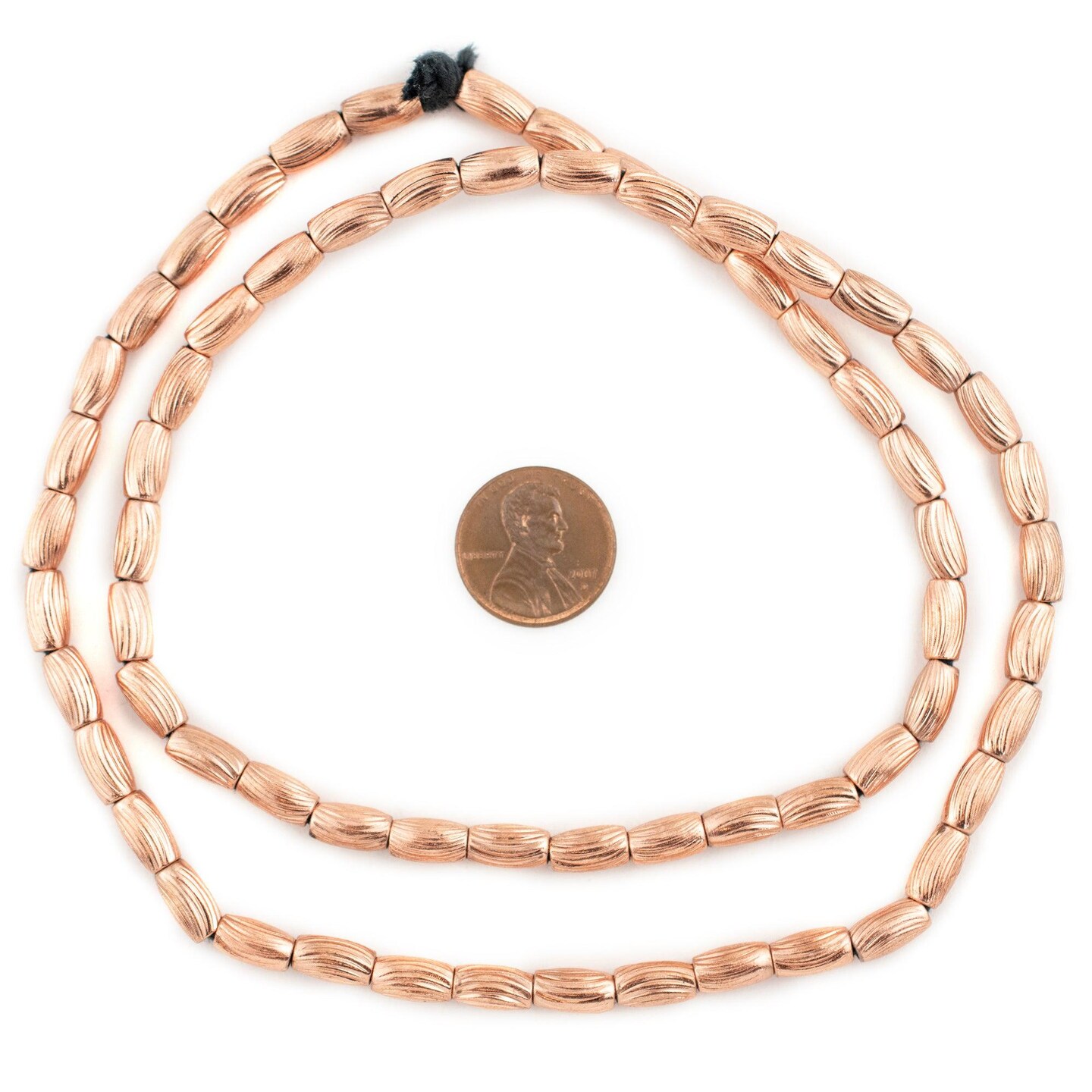 The Bead Chest Copper Patterned Rice Beads 9x5mm Oval Large Hole 24 Inch Strand